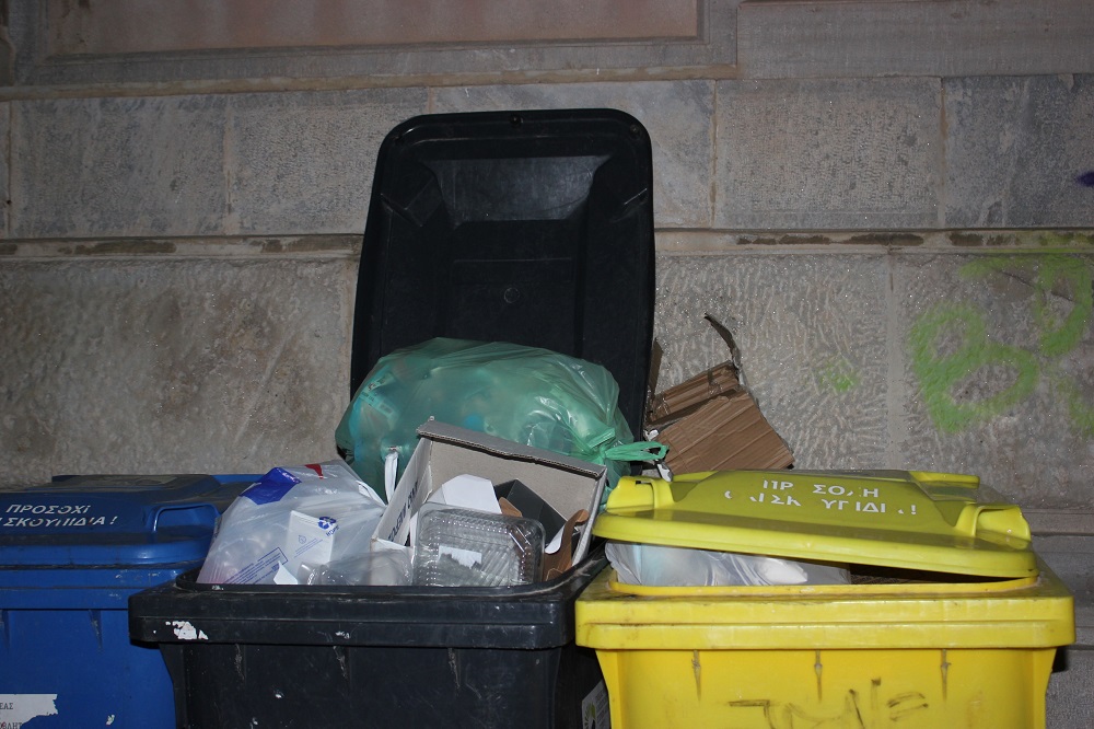 Τόσο οι πράσινοι κάδοι απορριμμάτων, όσο όμως και οι κάδοι ανακύκλωσης, έφεραν σακούλες ανοικτές από τις οποίες μάλιστα, περιττά τρόφιμα κι άλλα αντικείμενα είχαν διασκορπιστεί περιμετρικά αυτών, τα οποία προφανώς είχαν μείνει εκεί, επί αρκετές ώρες. Η πρωτοφανής έντονη δυσοσμία που αναδυόταν μάλιστα μέσα από τους συγκεκριμένους κάδους, προκάλεσε την δυσφορία των διερχόμενων περιπατητών και πεζών, γεγονός που προστάζει τη συστηματικότερη παρουσία της αρμόδιας Υπηρεσίας Καθαριότητας.