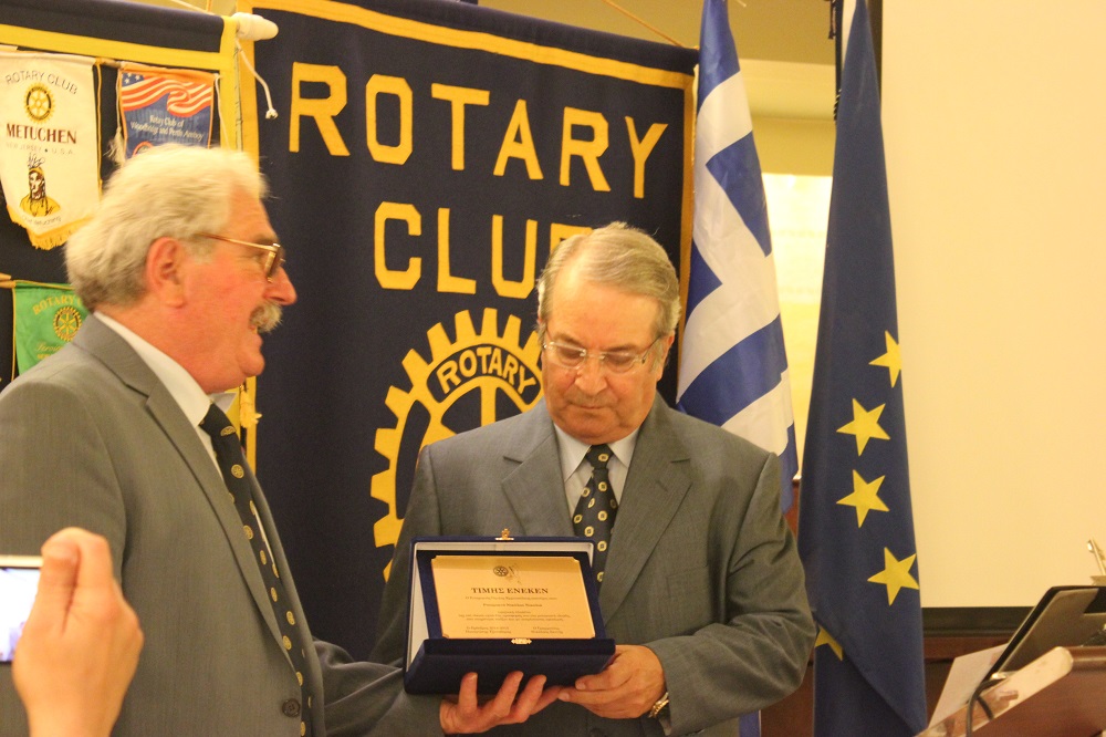Από την πλευρά του, ο Παναγιώτης Τζαναβάρης μίλησε για τη διετή (συνεχή) προεδρία του στον Όμιλο, σε μία περίοδο ιδιαίτερα δύσκολη λόγω οικονομικών και κοινωνικών συγκυριών, που όμως κατά τη διάρκειά της, ο Ροταριανός Όμιλος Ερμουπόλεως απέσπασε εκ νέου, τον Έπαινο από την Περιφέρεια αλλά και την Εύφημη Μνεία του προέδρου του Διεθνούς Ρόταρυ για τις δράσεις και την προσφορά του. Εμφανώς συγκινημένος, ο Παναγιώτης Τζαναβάρης, κατέστησε σαφές πως ο ίδιος από κοινού με τα μέλη, κατέβαλλαν προσπάθεια να διατηρηθεί ο Όμιλος σε υψηλά επίπεδα, αναπτύσσοντας προγράμματα στο μέτρο των δυνατοτήτων του, τα οποία ανταποκρίθηκαν στις παρουσιαζόμενες ανάγκες. Στο πλαίσιο της τιμητικής διάκρισης του μέλους, Νικόλαου Νικολιά, ο κ. Τζαναβάρης εξέφρασε την ευγνωμοσύνη του προς τον τιμώμενο ροταριανό, ο οποίος του έδωσε την ευκαιρία “να συμπορευθεί στο παγκόσμιο ταξίδι του Ρόταρυ”, αποτελώντας ένα μέλος του ιστορικού Ομίλου, που μαζί με άλλους παγκοσμίως, όπως ανέφερε, “αγκαλιάζουν στοργικά τη γη”.