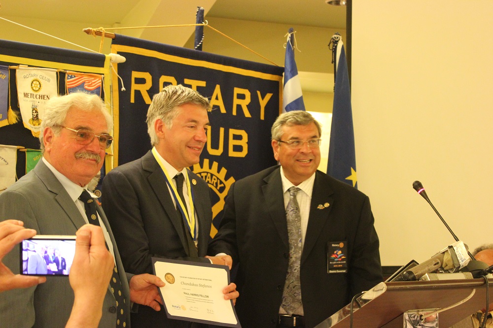 Σημαντική στιγμή κατά τη διάρκεια της βραδιάς αποτέλεσε και η ανακήρυξη σε Paul Harris Felow του μαιευτήρα – γυναικολόγου Δρ. Στέφανου Χανδάκα. Πρόκειται για την ανώτατη διάκριση που μπορεί να αποσπάσει ένας μη ροταριανός από τον Όμιλο, τιμή την οποία αξίζει ο κ. Χανδακάς με φόντο τη συνεχή προσφορά του μέσα από το Πρόγραμμα “Νάσος Χανδακάς” για τη στήριξη της Συριανής Μητέρας. Γυναίκες που έτυχαν της ιδιαίτερης προσοχής και φροντίδας του ιατρού, τον ευχαρίστησαν δημόσια, προσφέροντάς του ένα κάδρο με φωτογραφίες μικρών παιδιών, τα οποία έφερε ο ίδιος στη ζωή. Αμέσως μετά, ο κ. Τζαναβάρης τίμησε τον ροταριανό Γρηγόρη Καψωμενάκη για την ουσιαστική και συστηματική βοήθειά του στον Όμιλο, ενώ με τη σειρά του, ο ίδιος καλωσόρισε τον υιό του, Χρήστο Καψωμενάκη στην αγκαλιά του Ροταριανού Ομίλου Ερμουπόλεως.