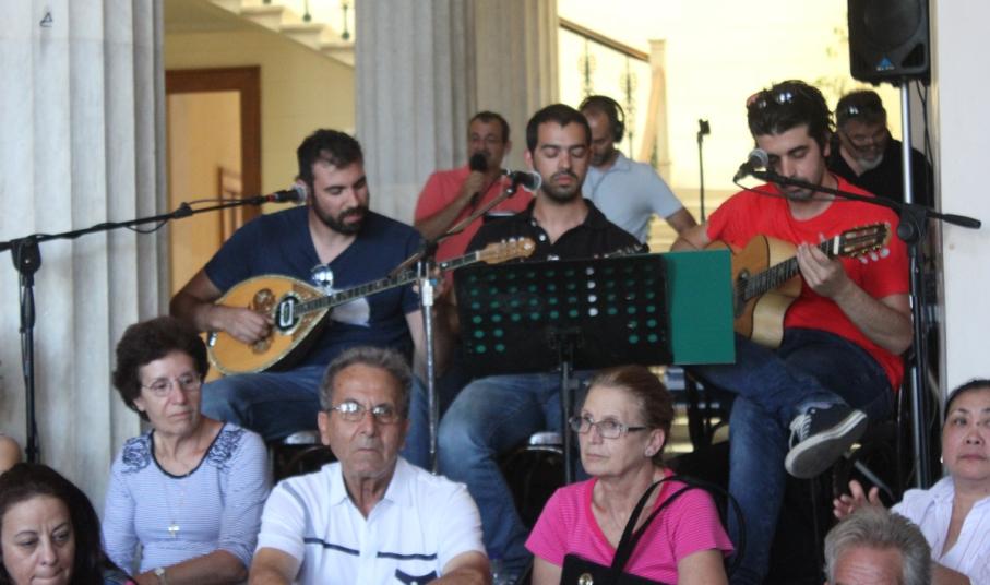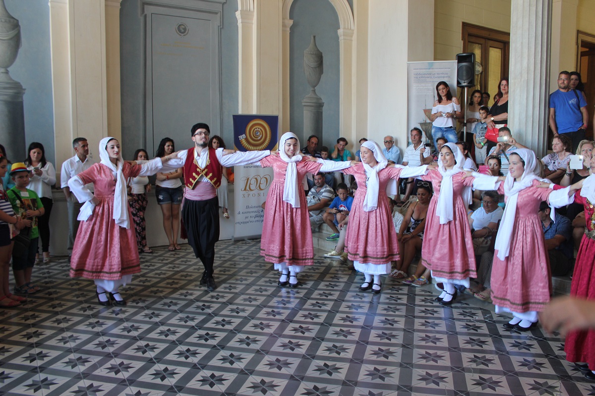 Αμέσως μετά, μέλη του Λαογραφικού – Χορευτικού Ομίλου “Η Σοφία της παράδοσης” παρουσίασαν νησιώτικους χορούς, αποσπώντας το θερμό χειροκρότημα των παρευρισκομένων, παραδίδοντας τη σκυτάλη στους Κύπριους καλλιτέχνες.