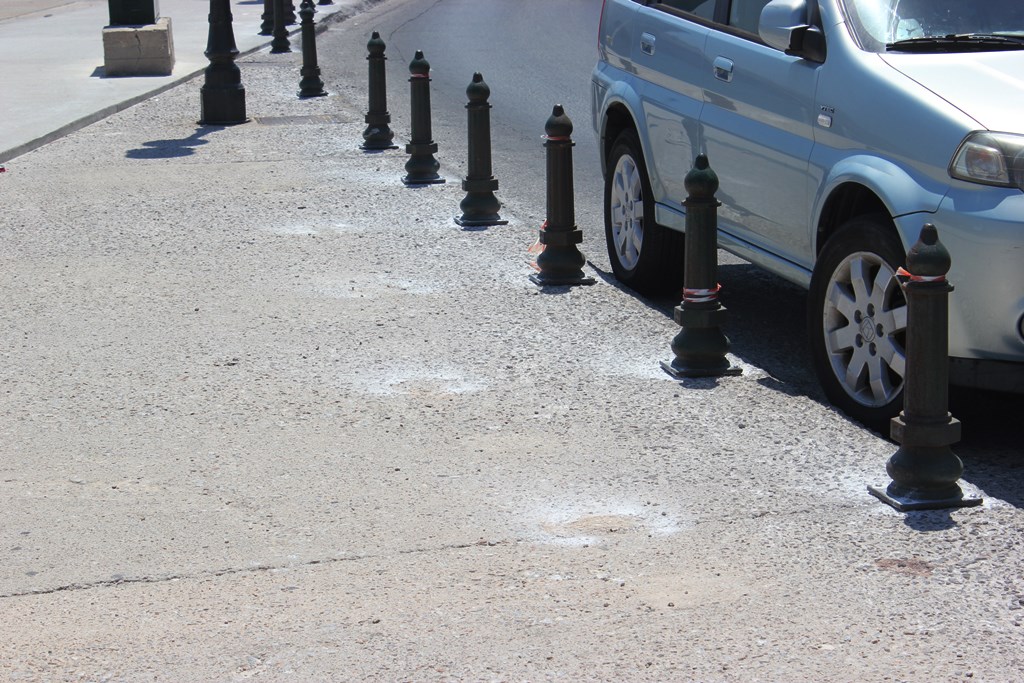 Μπορεί τα κολωνάκια να μετακινήθηκαν μερικά εκατοστά, προκειμένου να μην υπάρχει χώρος για τη στάθμευση των οχημάτων επάνω στο πεζοδρόμιο της Ακτής Πέτρου Ράλλη, οι οδηγοί, ωστόσο, δεν φαίνεται να αποτρέπονται.