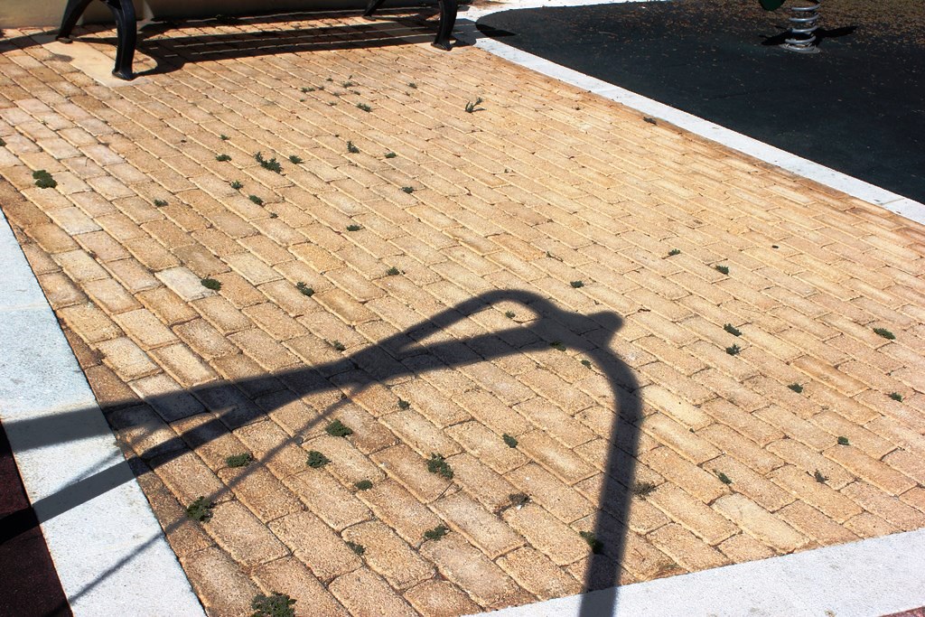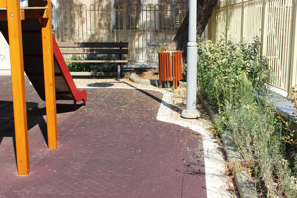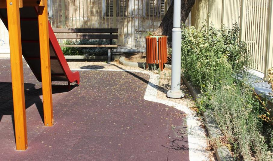 Όπως φαίνεται στο φωτογραφικό υλικό, ανάμεσα στα πλακίδια, που αποτελούν το δάπεδο της παιδικής χαράς, έχουν φυτρώσει άγρια χόρτα, τα οποία δεν έχουν αφαιρεθεί, με αποτέλεσμα, να αποτελούν κίνδυνο, τόσο για την ασφάλεια των μικρότερων παιδιών που τρέχουν και παίζουν στο σημείο, όσο και για τη σωστή διατήρηση των ίδιων των πλακιδίων, καθώς οι ρίζες των φυτών είναι συχνό φαινόμενο να «σπρώχνουν» τις πλάκες προς τα πάνω, συμβάλλοντας στη σταδιακή αποκόλλησή τους.