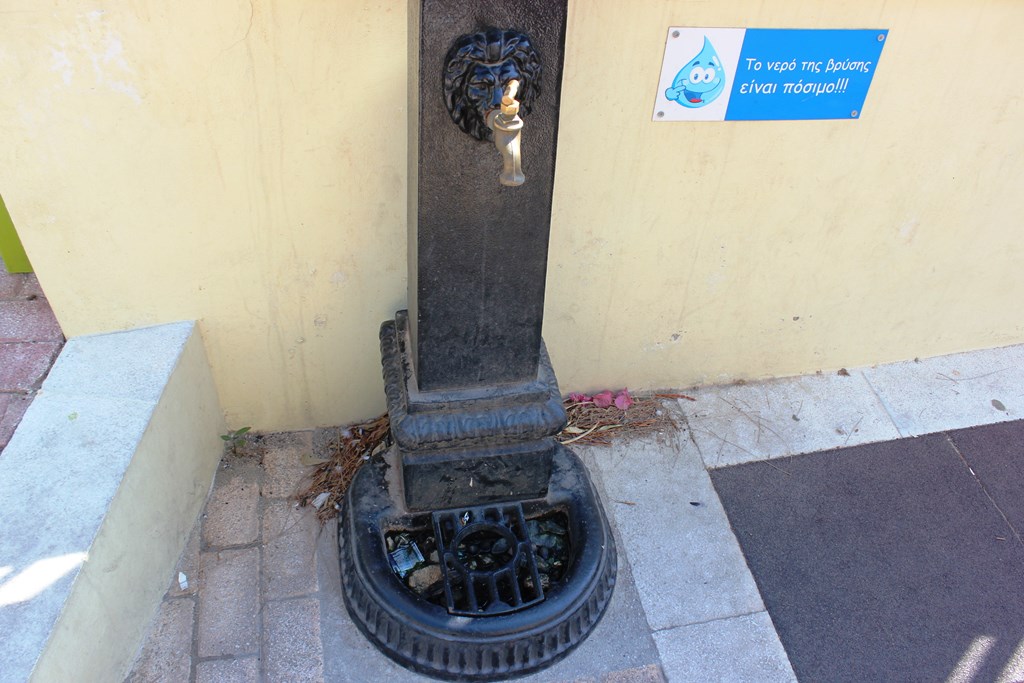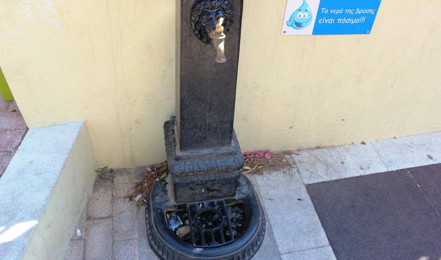 Επιπλέον, υπάρχουν αρκετά πεσμένα φύλλα, από τα τριγύρω δέντρα, τα οποία δεν έχουν καθαριστεί, ενώ και στο σημείο, που βρίσκεται η βρύση με το πόσιμο νερό, παρατηρούνται απορρίμματα.