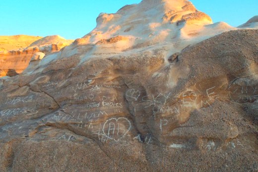 Οι περιπτώσεις σμίλευσης και γραφής συνθημάτων πάνω στα βράχια είναι μεμονωμένες και πραγματικά μας εξοργίζουν. Εκεί που ο Θεός με την απλότητά του ευλόγησε τον άνθρωπο, κάποιοι επιχειρούν να βάλουν την δική τους παράταιρη πινελιά. Δεν θα τους αφήσουμε!