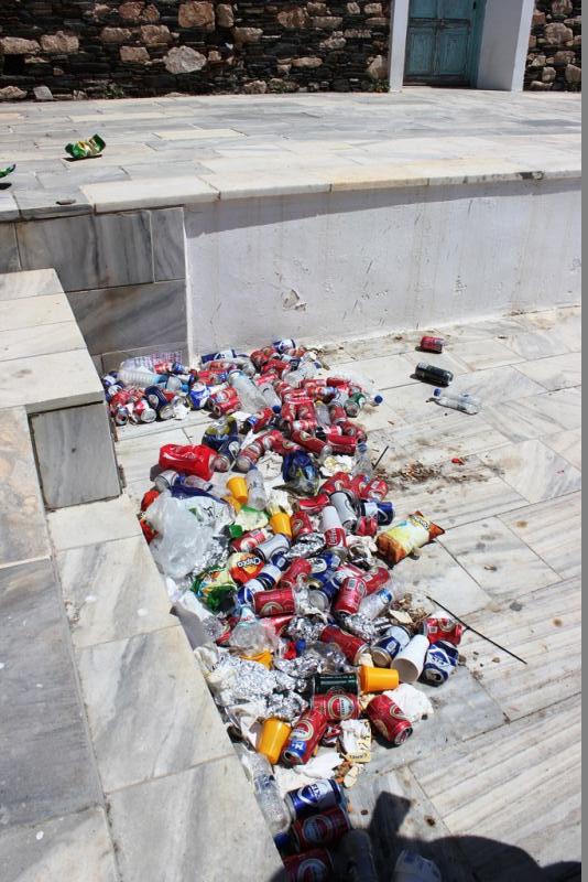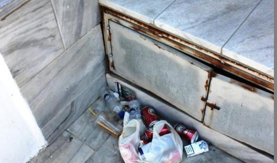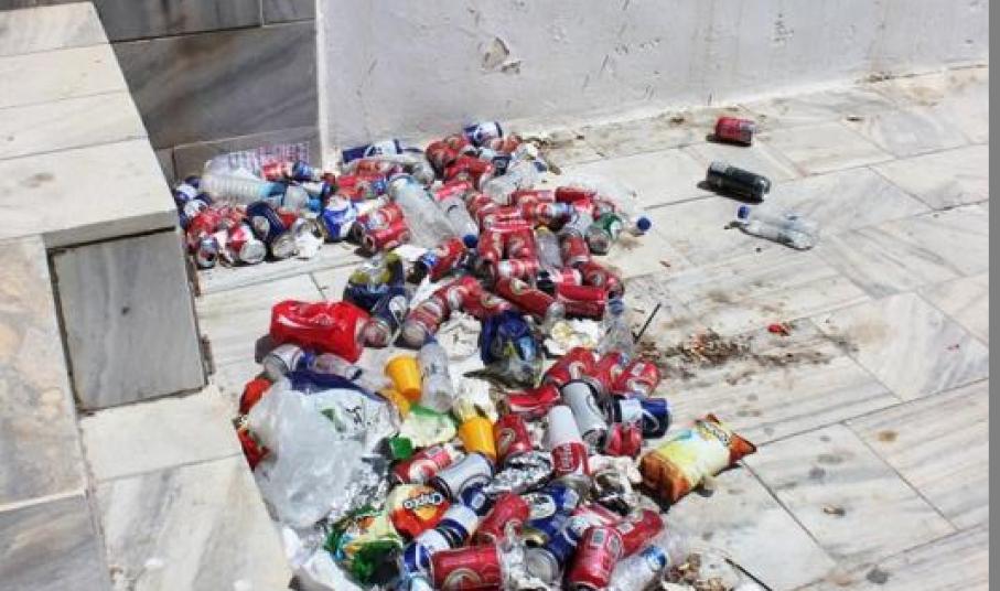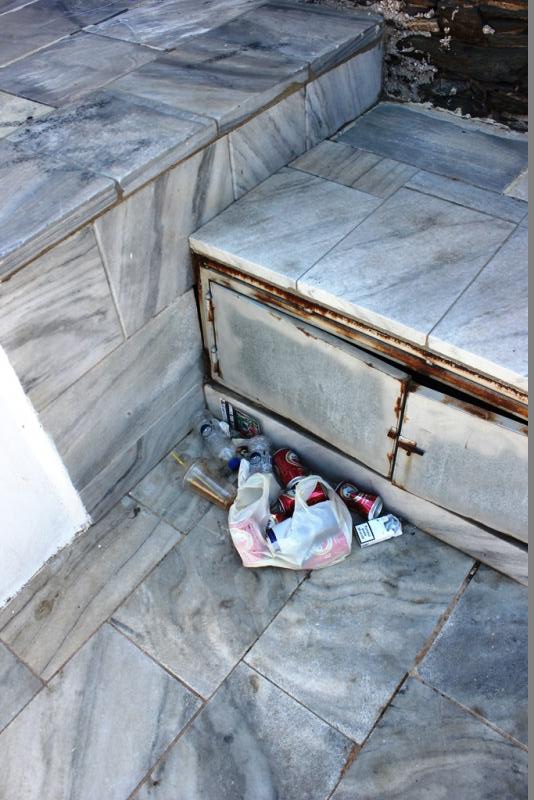 Κείτονται ακόμα τα σκουπίδια, που άφησαν πίσω τους οι επισκέπτες του 9ου Indie Rock Festival, στους εσωτερικούς και εξωτερικούς χώρους του θεάτρου «Ευανθία Καΐρη», των Λαζαρέττων.