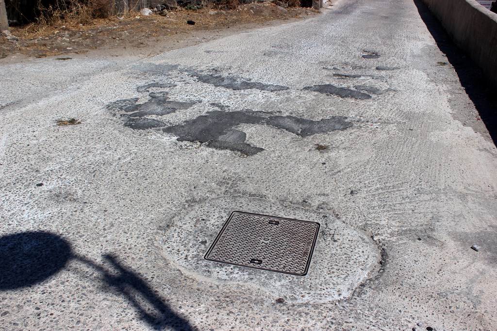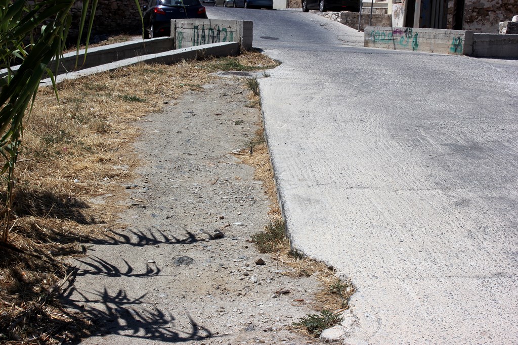 Προβληματική η μετάβαση των οχημάτων από την οδό Κατραμάδου, προς την οδό Ανδρέα Παπανδρέου (Λαλακιά) και αντίστροφα, από τον σκυροδετημένο δρομίσκο, λόγω της κακής του ποιότητας.