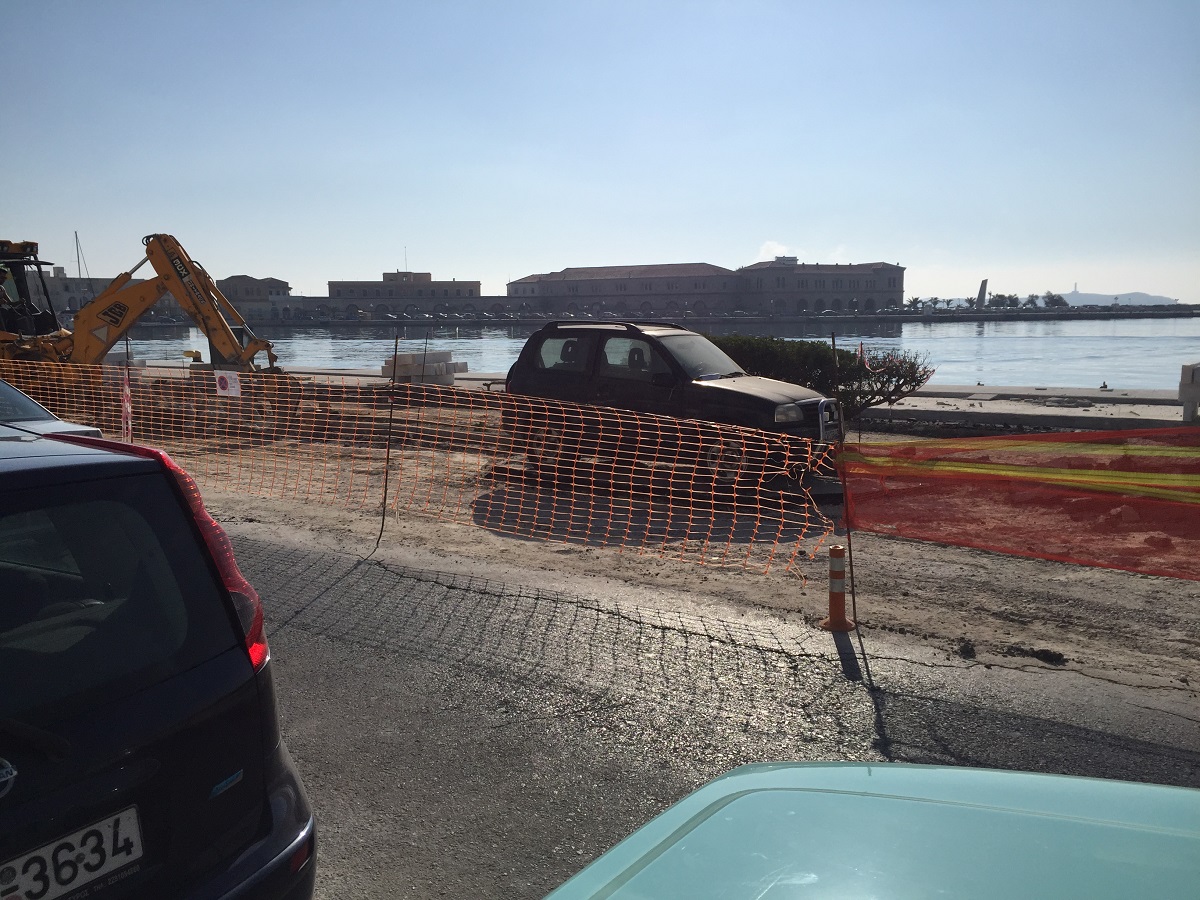 Υπενθυμίζεται ότι ο οριοθετημένος χώρος του εργοταξίου είναι από τα στέγαστρα του λιμανιού έως την οδό Χίου και ειδικότερα η εξωτερική λωρίδα κυκλοφορίας του λιμανιού έως τα κρηπιδώματα.