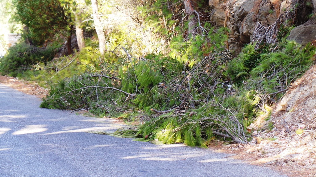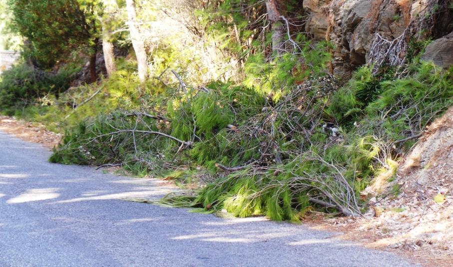 Για παραπάνω από πέντε ημέρες κείτονται τα κομμένα τμήματα των δέντρων στον επαρχιακό δρόμο των Χρουσσών, έπειτα από εργασίες κλαδέματος, που πραγματοποιήθηκαν στην περιοχή.