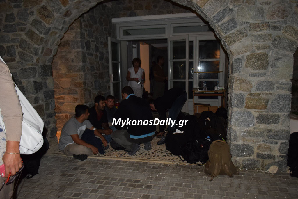 Από το Δήμο Μυκόνου, παρασχέθηκε για την στέγαση των προσφύγων, κτίριο του Λιμενικού Ταμείο στο νέο λιμάνι, όπου και εγκαταστάθηκαν, χωρίς κανένα πρόβλημα, ή την εκδήλωση κάποιου επεισοδίου. Σύμφωνα δε, με όσα είδαν το φως της δημοσιότητας, η εξάντληση των προσφύγων ήταν τέτοια, που νωρίς το βράδυ, οι περισσότεροι είχαν ήδη αποκοιμηθεί.
