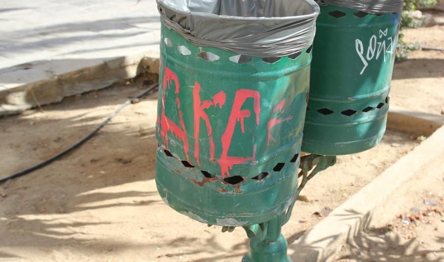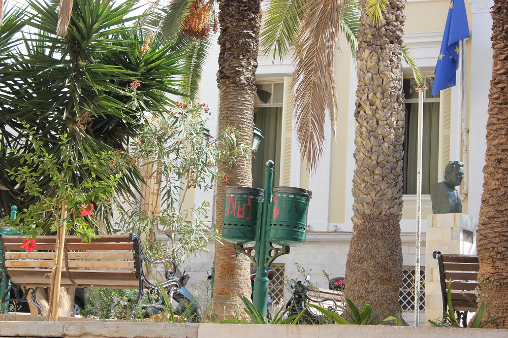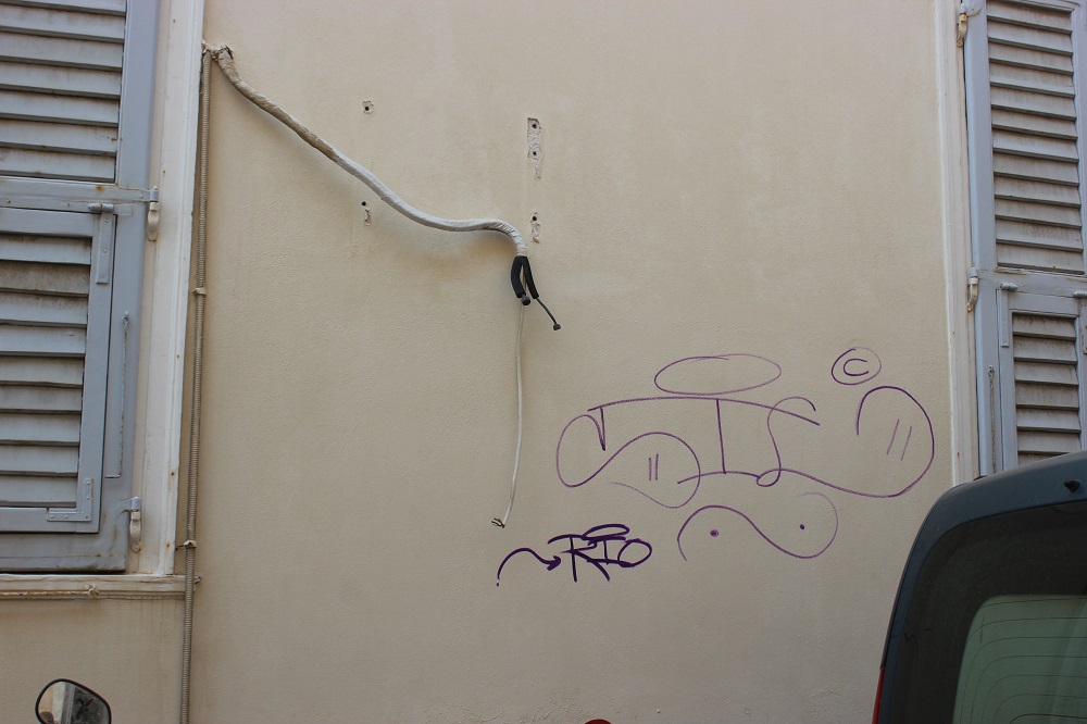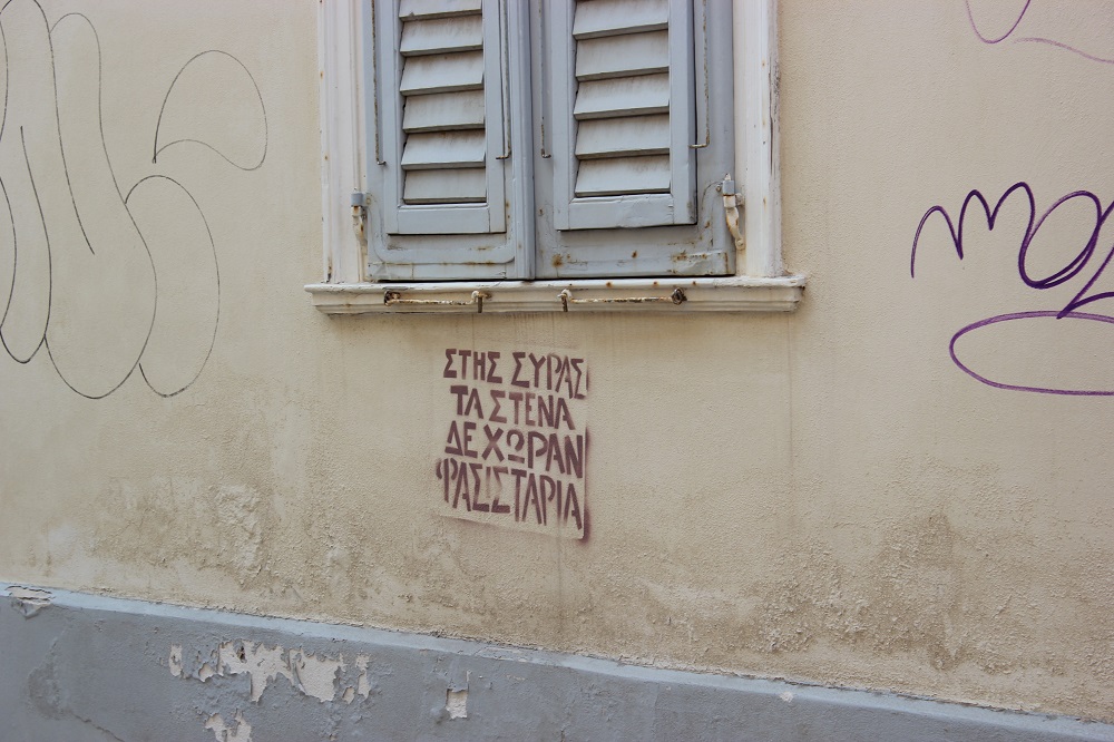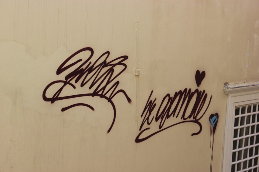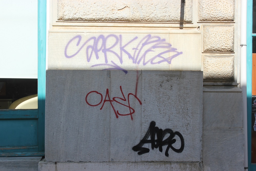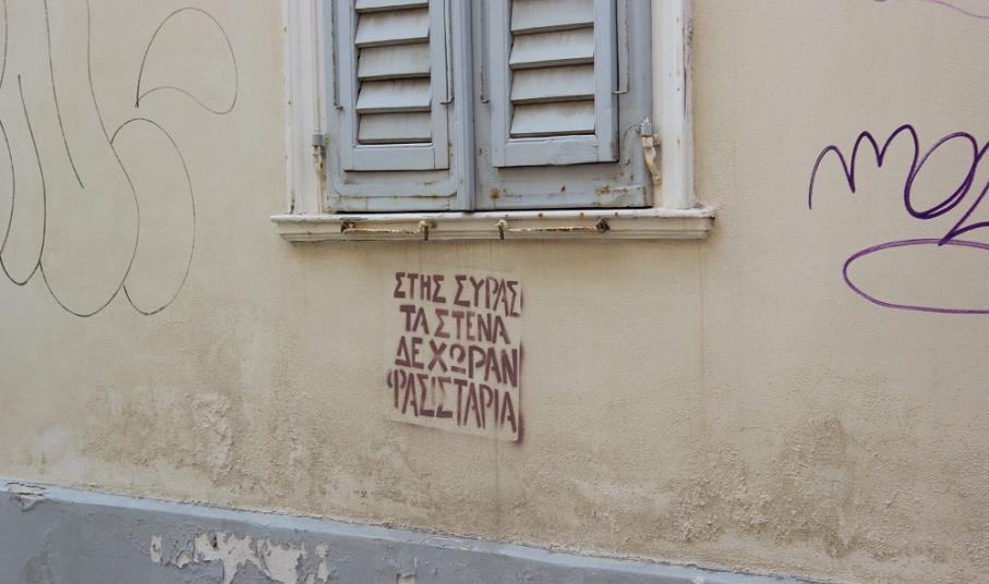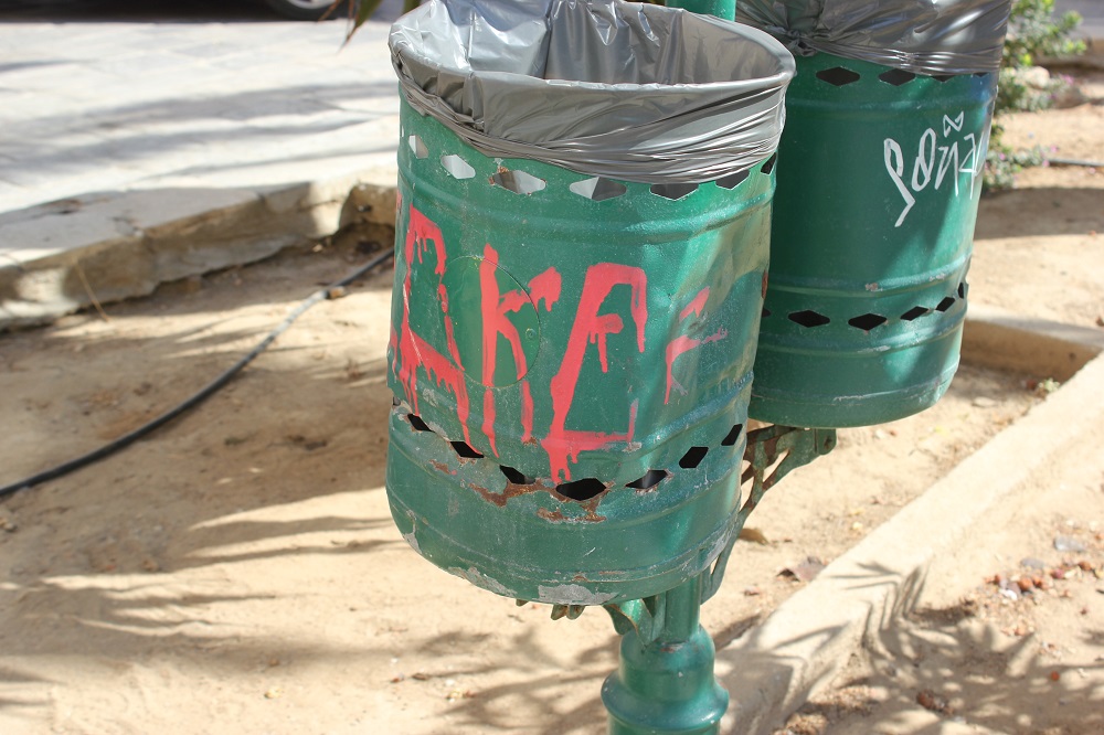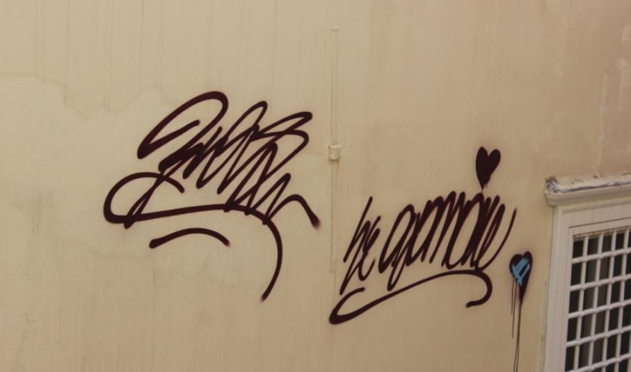Πέτρινες αλλά και μαρμάρινες επιφάνειες κτιρίων, προσόψεις καταστημάτων, καθώς επίσης οι επιφάνειες δημόσιων κτιρίων όπως της Περιφέρειας Νοτίου Αιγαίου αλλά ακόμη και οι κάδοι απορριμμάτων σε μικρές πλατείες (πχ. Πλατεία Τσιροπινά), “κοσμούνται” από τη μανία συμπολιτών μας να “στολίζουν” το ιστορικό κέντρο τακτικά με συνθήματα ή γκράφιτι, η πλειοψηφία των οποίων συνήθως, δεν εκφράζει καμία ουσία και δεν έχει κανένα ουσιαστικό περιεχόμενο.