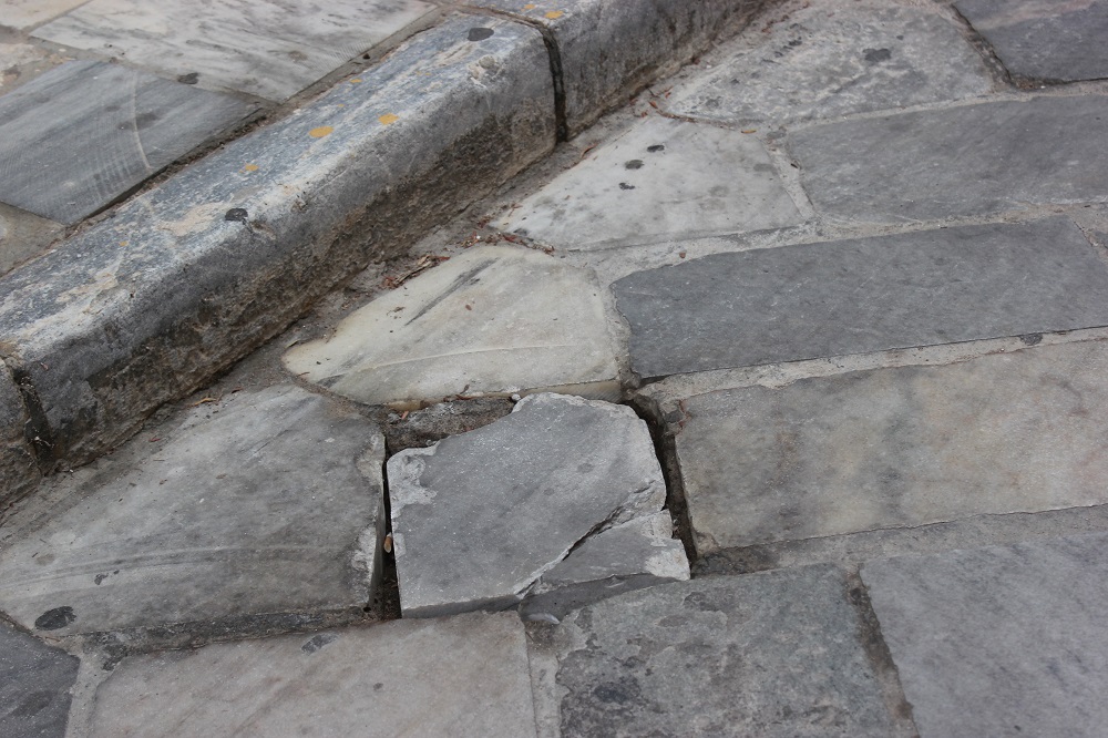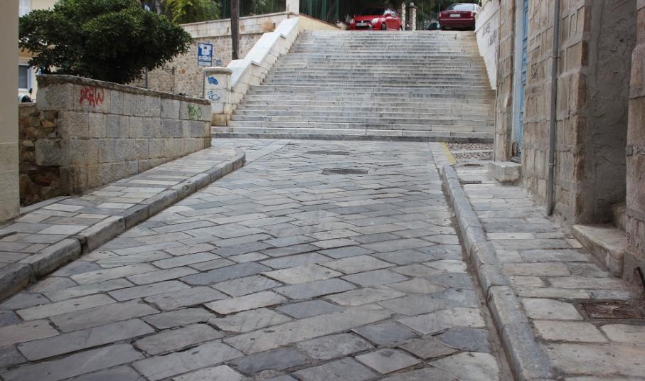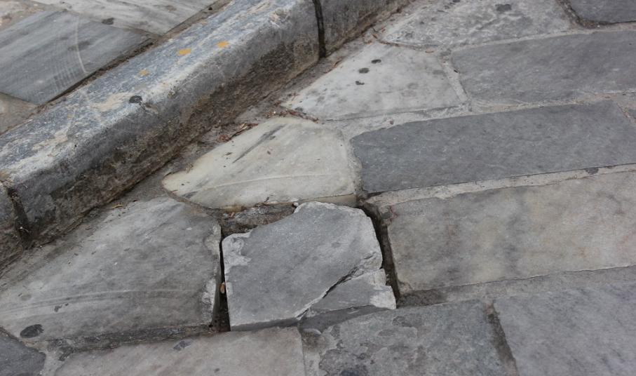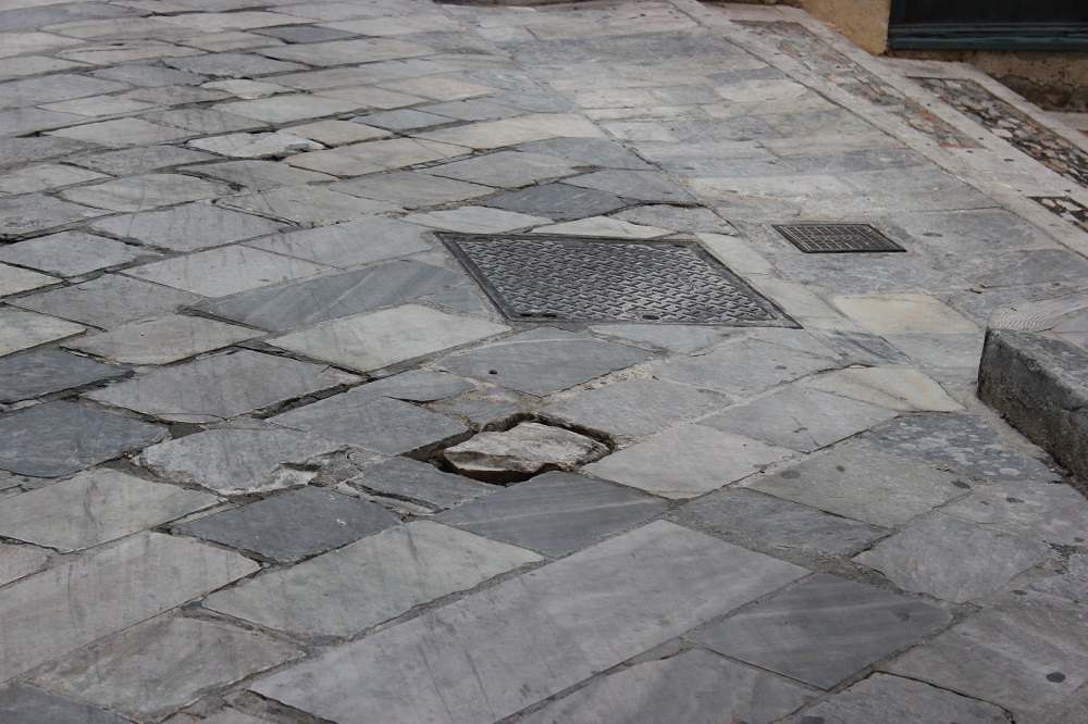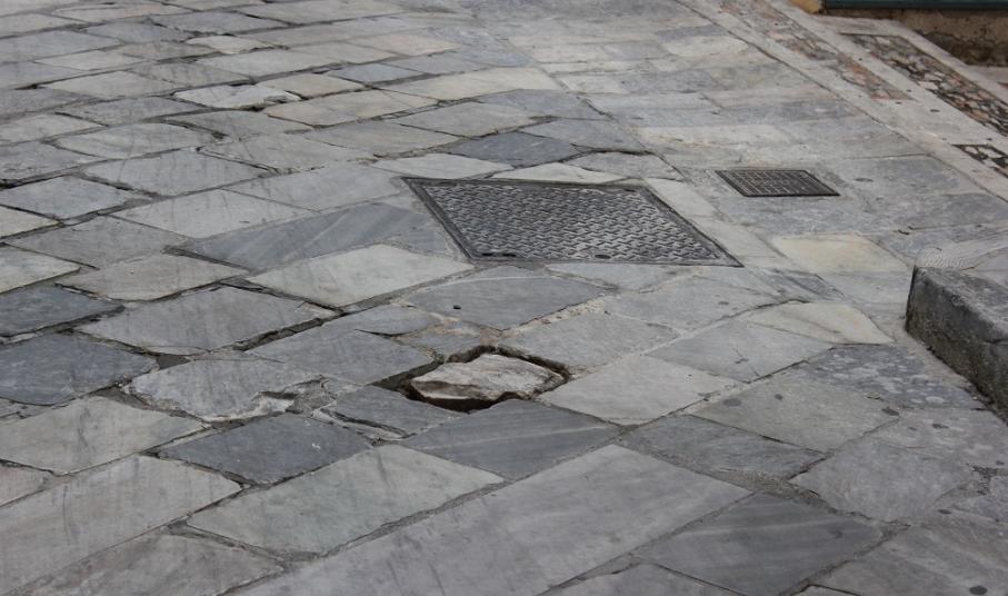 Μέρος των ταλαιπωρημένων από τον χρόνο παραδοσιακών πλακόστρωτων δρόμων αποτελεί το μεγαλύτερο τμήμα της πλατείας Σταύρου Βαφία καθώς και της οδού Μητρ. Αντ. Πολίτη στο κέντρο της Ερμούπολης, με αρκετές μαρμάρινες πλάκες να αποκολλώνται σχεδόν σε καθημερινή βάση.