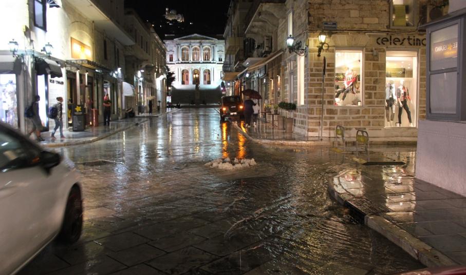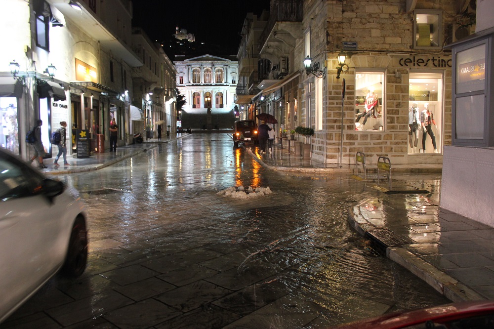 Με βοθρολύματα γέμισε το κέντρο της Ερμούπολης, το βράδυ της Τρίτης, έπειτα από βαριά νεροποντή, που έπληξε το νησί, ενώ παράλληλα, πλημμύρισαν όλοι οι κεντρικοί δρόμοι, συμπεριλαμβανομένων των οδών Ηρ. Πολυτεχνείου, Νικ. Μανδηλαρά και της Ακτής Παπάγου.