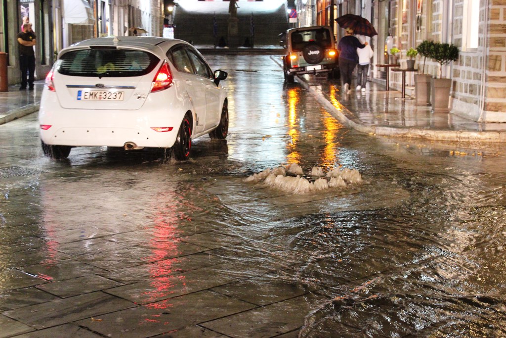 Εύλογα, η κυκλοφορία κατά τη διάρκεια της βροχόπτωσης πραγματοποιούνταν με μεγάλη δυσκολία, ιδιαίτερα για τους οδηγούς δικύκλων, ενώ ταυτόχρονα οι επιχειρηματίες με σκούπες ανά χείρας επιχειρούσαν να αποτρέψουν την εισροή του νερού και της λάσπης, εντός των καταστημάτων τους, καθώς αφενός η στάθμη των υδάτων είχε ανέβει επικίνδυνα και αφετέρου η διέλευση των οχημάτων από το δρόμο “σήκωνε” κύματα νερού προς την κατεύθυνση των μαγαζιών.