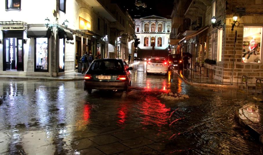 Πιο συγκεκριμένα, αργά το απόγευμα της Τρίτης και μετά από έντονη βροχόπτωση, κεντρικότατοι δρόμοι της Ερμούπολης πλημμύρισαν, με το νερό να ανεβαίνει ακόμη και πάνω από το ύψος των πεζοδρομίων, κάτι που αναστάτωσε κατοίκους, οδηγούς, αλλά και καταστηματάρχες, των οποίων οι επιχειρήσεις βρίσκονταν ακόμη σε λειτουργία.