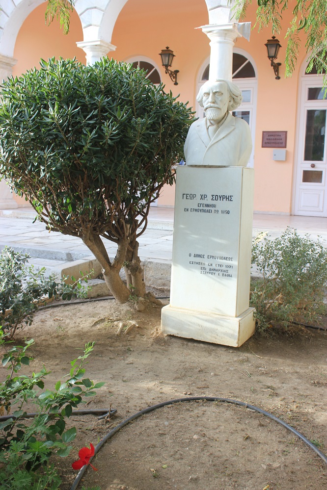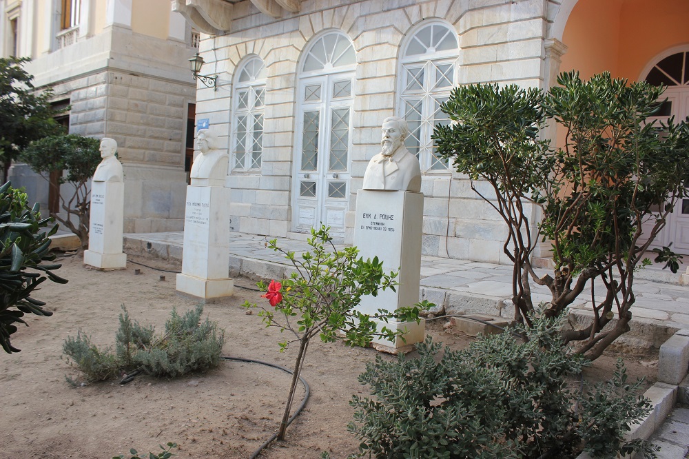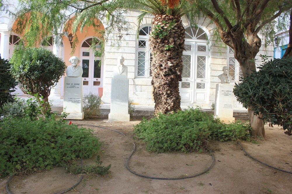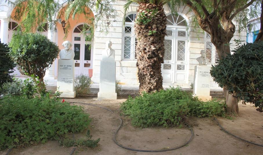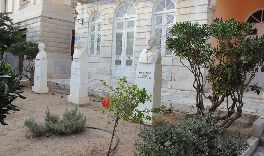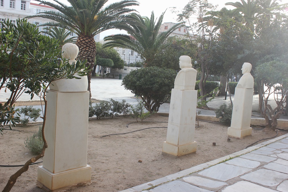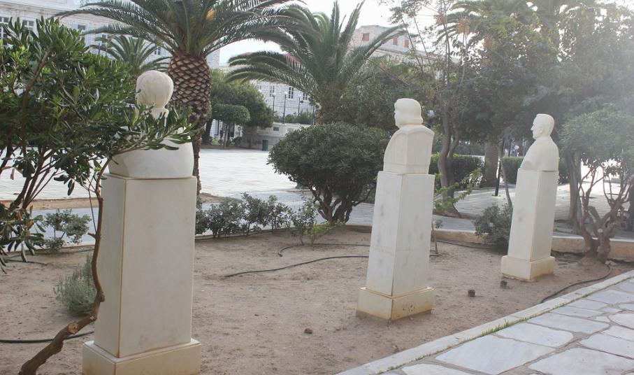 Τον περιβάλλοντα χώρο που αρμόζει σε προτομές σημαντικών προσωπικοτήτων που έγραψαν τη δική τους ιστορία και προέβαλαν το πλούσιο πνευματικό επίπεδο της Σύρου και ειδικότερα της Ερμούπολης κατά τα παρελθόντα έτη, απέκτησαν τα μαρμάρινα μνημεία μπροστά από τα κτίρια που στεγάζουν το Ιστορικό Αρχείο Κυκλάδων, καθώς και τη Δημοτική Βιβλιοθήκη του Δήμου Σύρου – Ερμούπολης.
