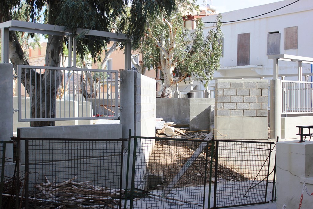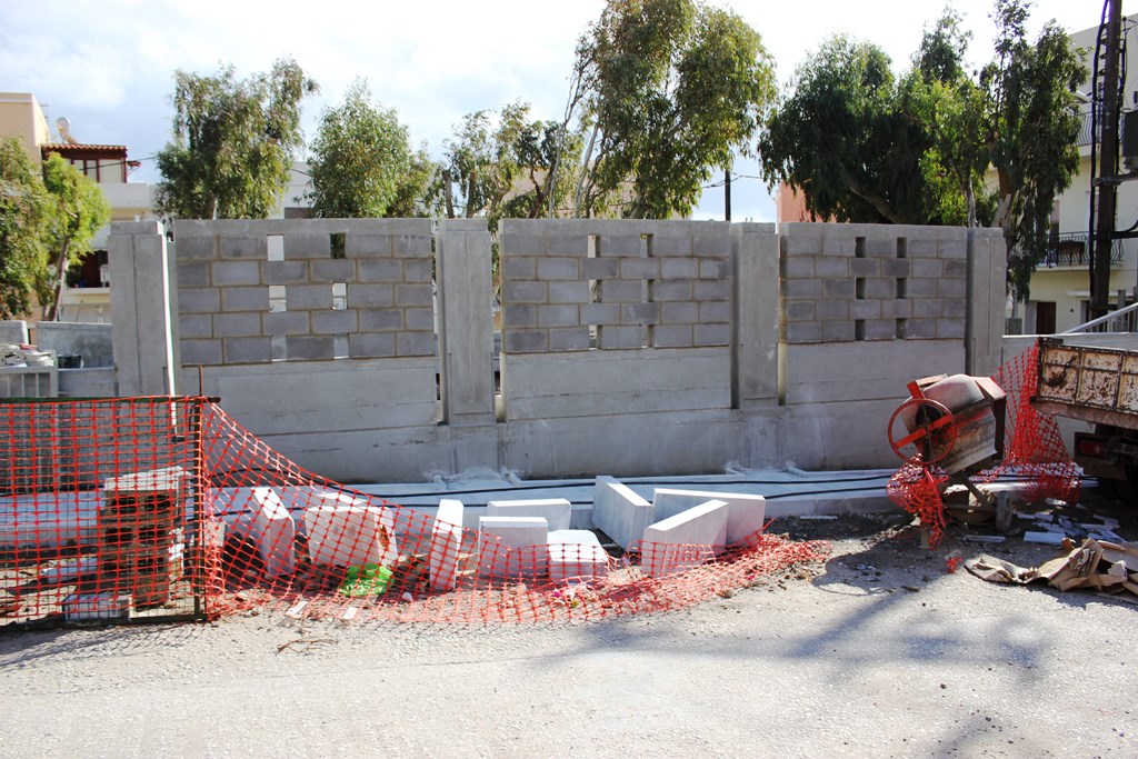 Στη θέα των μεγάλων γκρίζων τοίχων, κατασκευασμένων από σκυρόδεμα και τσιμεντόλιθους, όπως και των κιγκλιδωμάτων, που περιβάλλουν την παιδική χαρά, οι κάτοικοι της περιοχής αντέδρασαν έντονα, ωστόσο συνομιλώντας με τους αρμόδιους των Τεχνικών Υπηρεσιών, καθησυχάστηκαν, ότι αυτή είναι μόνο η προσωρινή εικόνα.