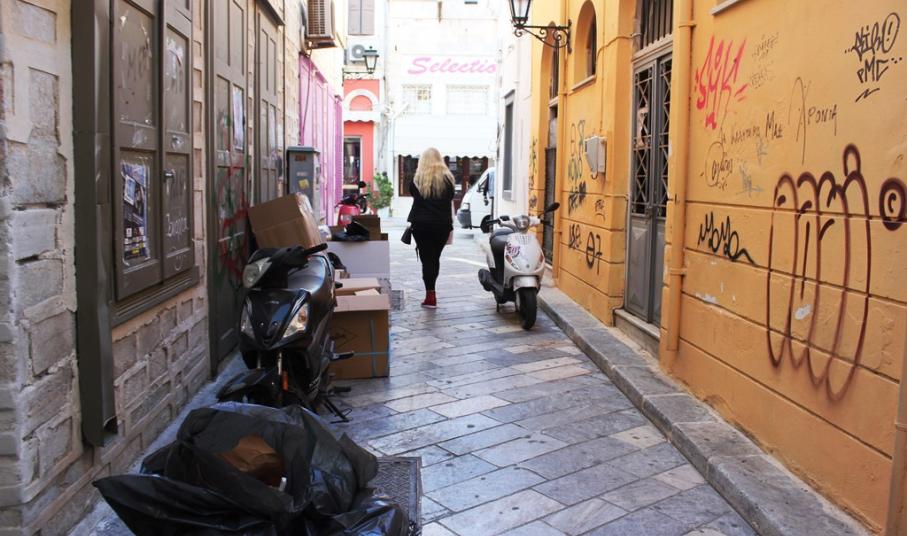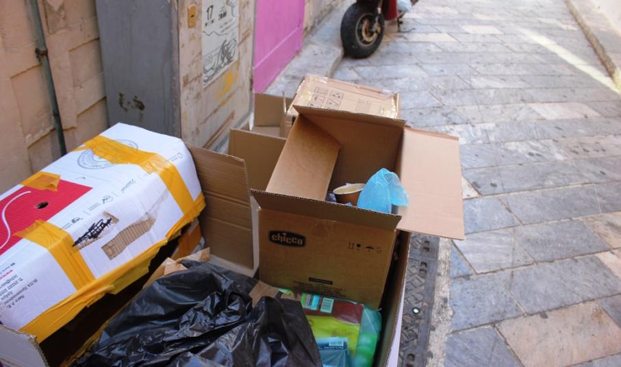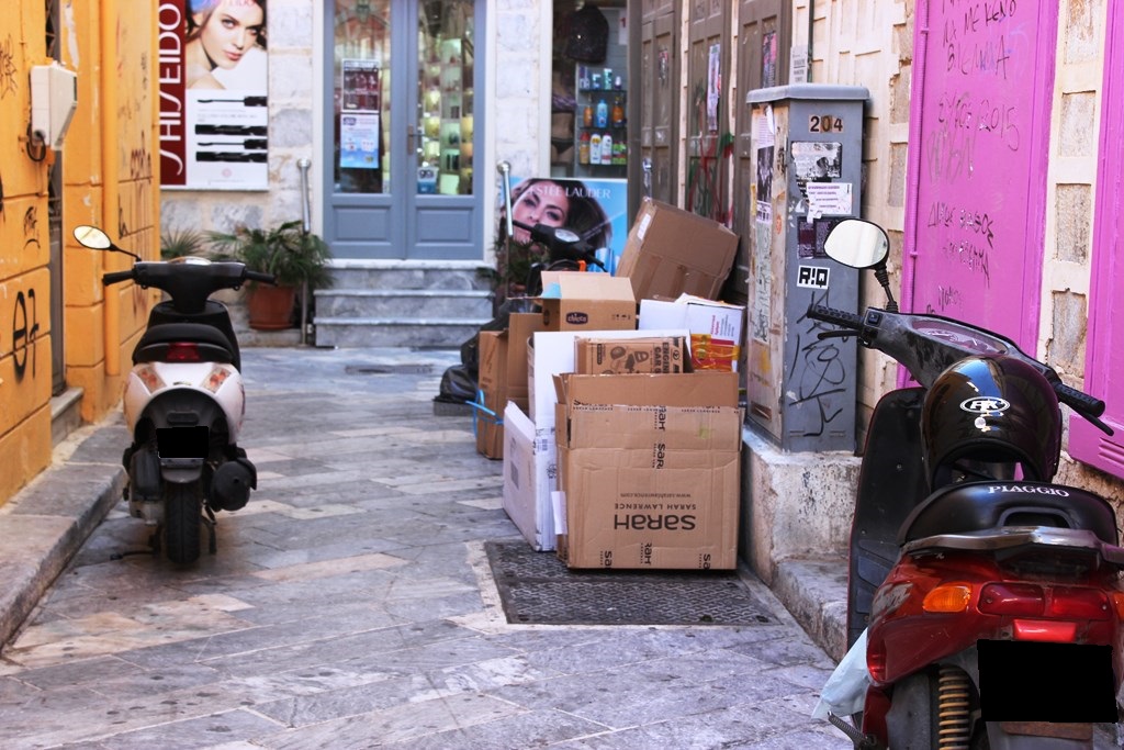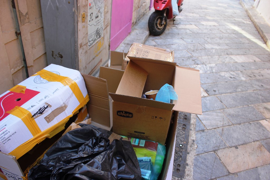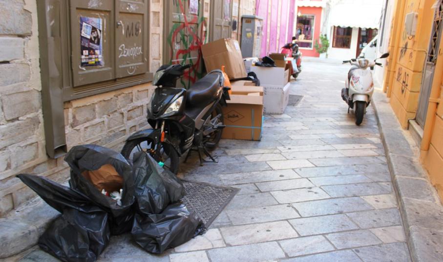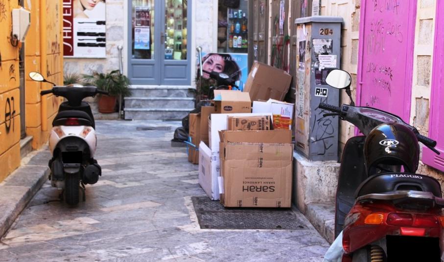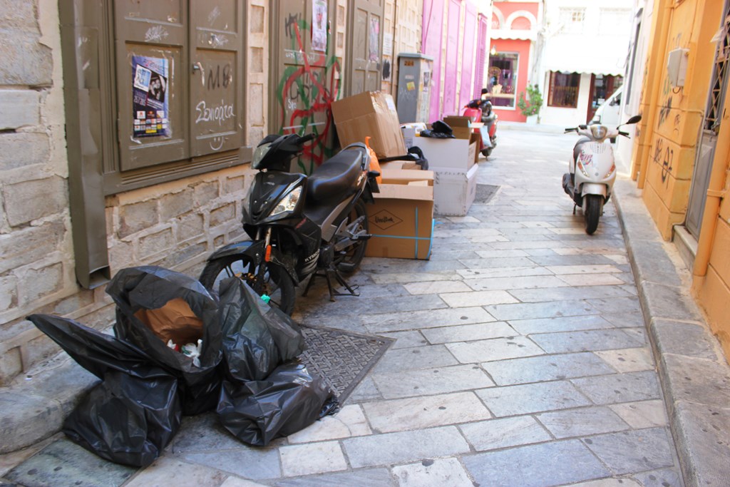 Σε σκουπιδότοπο έχει μετατραπεί η οδός Ανάφης, καθώς βουνά με κούτες και σκουπίδια στοιβάζονται καθημερινά κατά μήκος της, με αποτέλεσμα ένας κάθετος δρόμος σε μία από τις εμπορικές οδούς του κέντρου της Ερμούπολης να παρουσιάζει μία απαράδεκτη εικόνα.