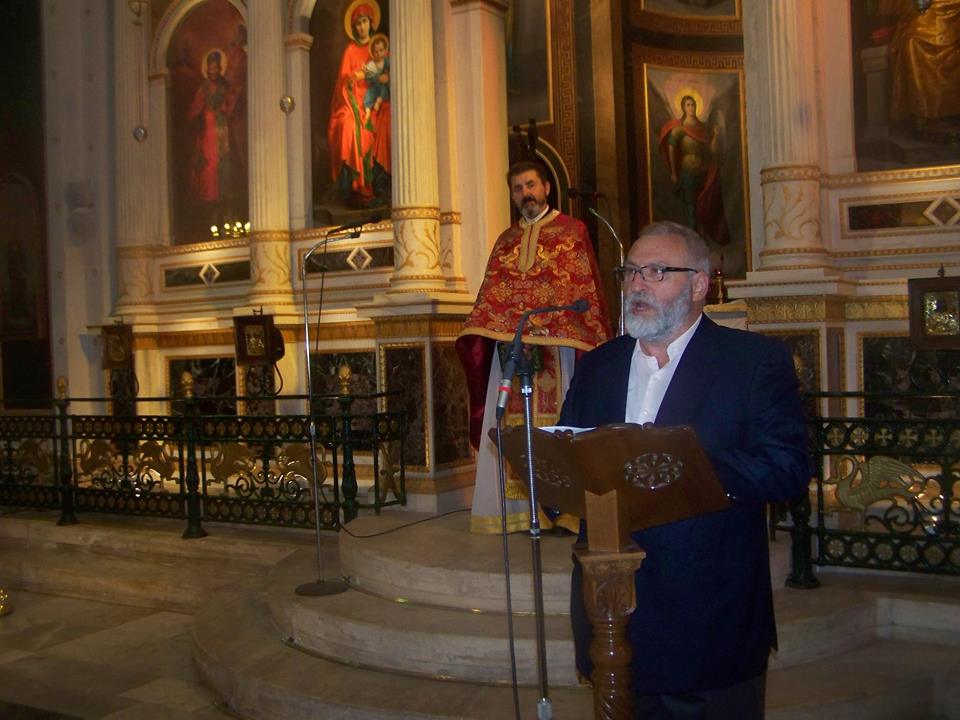 Στο πλαίσιο του εορτασμού, τελέστηκε Επίσημη Δοξολογία στον Ιερό Ναό του Αγίου Νικολάου, μετά το πέρας της οποίας, εκφωνήθηκε ο πανηγυρικός της ημέρας, από τον Γραμματέα του Δημοτικού Συμβουλίου του Δήμου Σύρου – Ερμούπολης κ. Παύλο Χρυσαφίδη.
