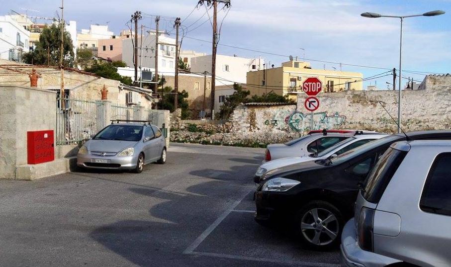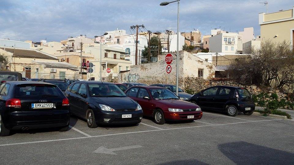 Η χρησιμότητα των χώρων στάθμευσης κοντά στην Ερμούπολη αναδεικνύεται από την εικόνα που παρουσιάζει το πάρκινγκ στη θέση «Πλακούρα», πλησίον του δρόμου της Λαλακιάς.