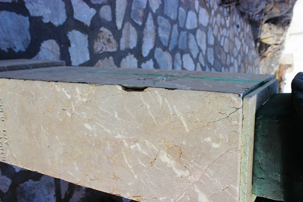 Όπως δείχνει και το φωτογραφικό υλικό, η σκωρία από την προτομή, με την κύλιση των ομβρίων υδάτων έχει χρωματίσει το μαρμάρινο βάθρο, ενώ ακόμη και οι ίδιες οι μαρμάρινες πλάκες έχουν ραγίσει σε βάθος, σε ορισμένα σημεία, φανερώνοντας την ανάγκη συντήρησης του σημαντικού αυτού, για την ιστορική κληρονομιά της Σύρου, γλυπτού.