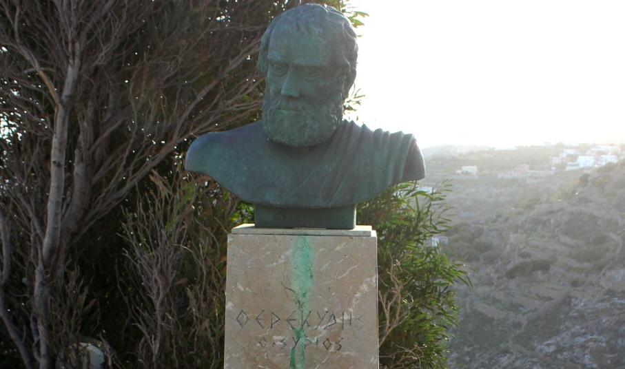 Σημάδια φθοράς έχει αρχίσει να παρουσιάζει η προτομή του Φερεκύδη του Σύριου, έργο του ζωγράφου και γλύπτη, Αντώνη Καλλεγιά, η οποία βρίσκεται στο πάνω Τέρμα της Άνω Σύρου.