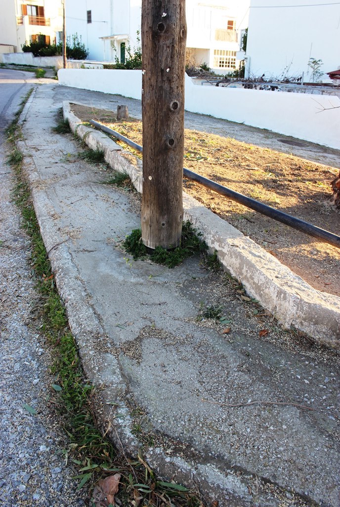 Αρκετά παραμελημένα φαίνεται να είναι τα πεζοδρόμια, στο πυκνοκατοικημένο κέντρο της περιοχής των Εργατικών Κατοικιών στα Τάλαντα.