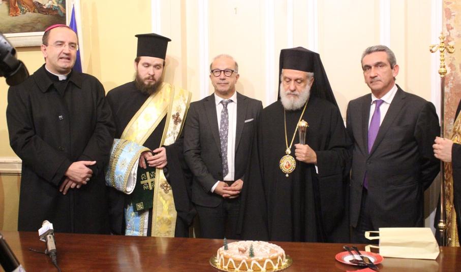 Στο διοικητήριο της πλατείας Τσιροπινά, πέραν του χωρικού αντιπεριφερειάρχη, Γιώργου Λεονταρίτη, έδωσαν το “παρών” οι δύο Επίσκοποι της Ορθόδοξης και της Καθολικής Εκκλησίας, κκ. Δωρόθεος Β΄ και Σεβ. π. Πέτρος Στεφάνου αντίστοιχα, καθώς επίσης οι επικεφαλής των παρατάξεων, οι έπαρχοι, οι περιφερειακοί σύμβουλοι και οι υπάλληλοι, εκπρόσωποι φορέων αλλά και ο δήμαρχος Σύρου – Ερμούπολης και οι επικεφαλής των δημοτικών παρατάξεων του νησιού.