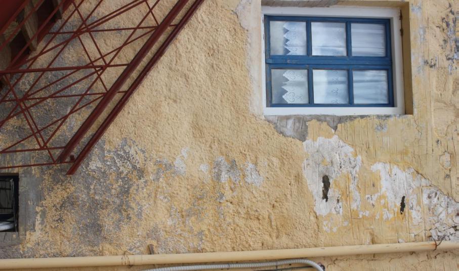 Οι φθορές, που παρουσιάζει στο εξωτερικό του το κτίριο είναι εμφανείς, κυρίως λόγω της υγρασίας, η οποία έχει προκαλέσει αρκετά προβλήματα σε τοίχους και εξωτερικές επιφάνειες.