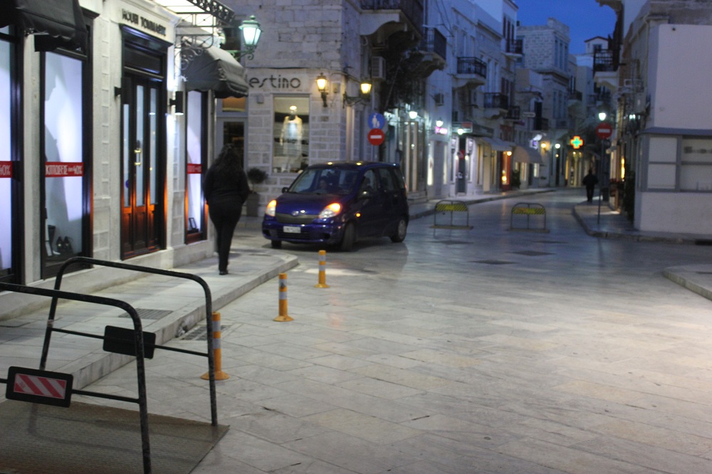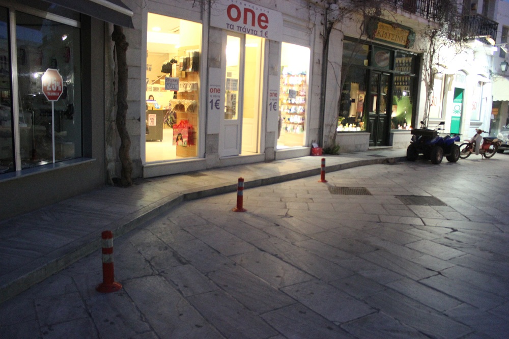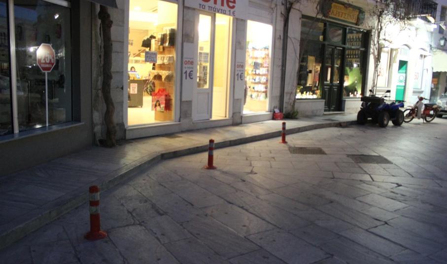 Πλησίον του Ιερού Ναού του Αγίου Νικολάου, επί της κεντρικής οδού πλησίον του ΙΚΑ, στην οδό Παναγιώτη Κατραμάδου κοντά στον Ιερό Ναό του Αγίου Γεωργίου, καθώς επίσης και σε τουλάχιστον τρία διαφορετικά σημεία επί της οδού Σταματίου Πρωίου δύναται να παρατηρήσει κάποιος τα εμπόδια που έχουν τοποθετηθεί εδώ και αρκετό καιρό, προκειμένου να μην μπορούν να παρανομήσουν οι οδηγοί οχημάτων και δικύκλων, αλλά και να μη συναντά εμπόδια η ομαλή κυκλοφοριακή ροή των οχημάτων. Εύλογα οδηγείται στο συμπέρασμα ο κάθε ένας εξ ημών, πως, η τοποθέτησή τους, μπορεί να προσβάλλει την αισθητική αρμονία της νεοκλασικής πόλης μας και δη του κέντρου, ωστόσο, η ύπαρξή τους, μάλλον είναι η πιο αποτελεσματική λύση ώστε να αποφεύγεται η ανάπτυξη της παράνομης στάθμευσης.