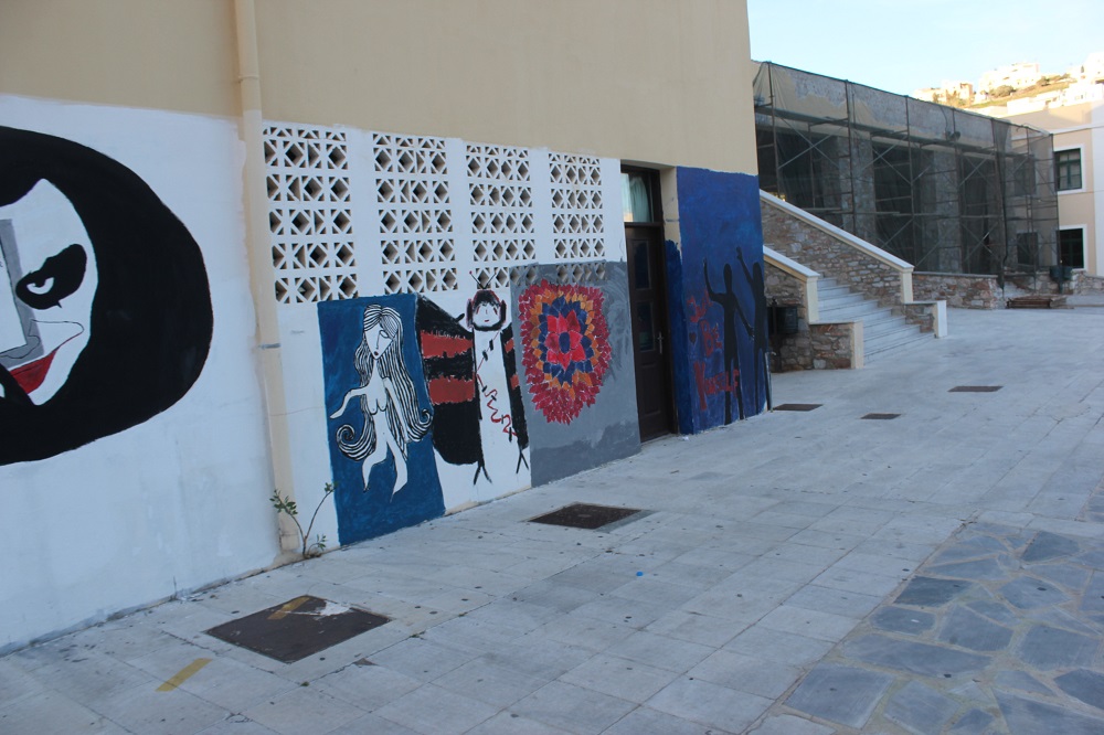 Με την προσωπική τους εικαστική υπογραφή, μαθητές του 1ου και του 3ου Γυμνασίου Σύρου κόσμησαν μεγάλες επιφάνειες τοίχων του Σχολικού Συγκροτήματος στην περιοχή του Ξηροκάμπου, κάνοντας πράξη όλα όσα έχουν διδαχθεί στο μάθημα των καλλιτεχνικών.