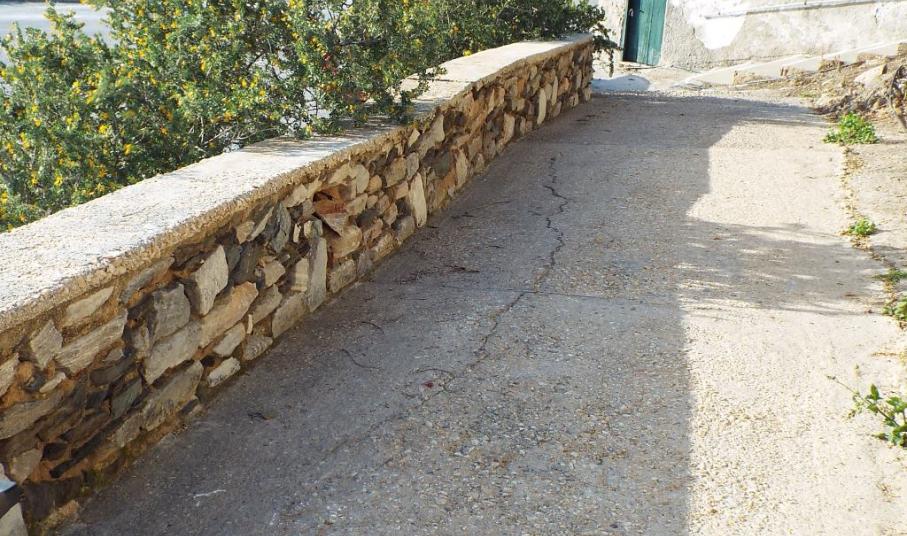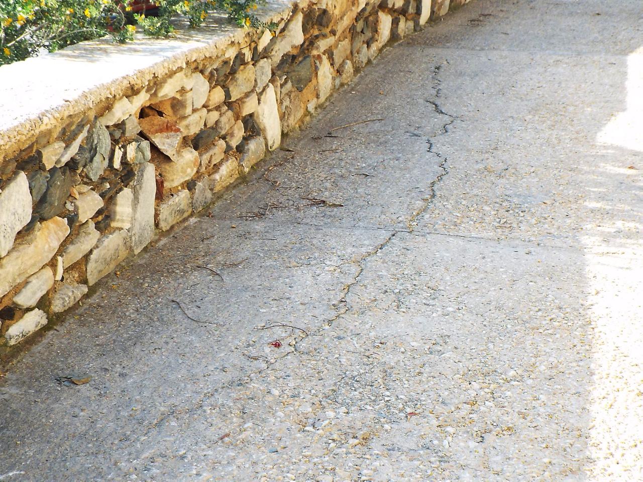 Δεδομένης της δημιουργίας κενού στο υπόβαθρο, σοβαρές φθορές και καθίζηση παρουσιάζει ο σκυροδετημένος δρομίσκος, που βρίσκεται ακριβώς πάνω από το τοιχίο και εξυπηρετεί τις ιδιωτικές κατοικίες, που βρίσκονται επ’ αυτού.