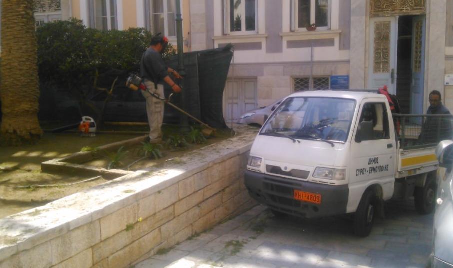 Με εντατικούς ρυθμούς προχωρούν οι εργασίες περιποίησης και καθαρισμού κεντρικών σημείων της Ερμούπολης και των ευρύτερων περιοχών αυτής, με την αρμόδια υπηρεσία και τον αντιδήμαρχο, Μάριο Βουτσίνο να δίνουν έμφαση σε πλατείες και μνημεία όπου θα πραγματοποιηθεί η κατάθεση στεφάνων ενόψει της εθνικής επετείου της 25ης Μαρτίου.
