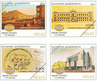 Η Εθνική Τράπεζα που αναπτύχθηκε παράλληλα με το νεοσύστατο ελληνικό κράτος, δίνει διαχρονικά μεγάλη βαρύτητα στο χαρακτήρα των οικημάτων που χρησιμοποιεί για τις λειτουργικές ανάγκες της. Για τον λόγο αυτό τρία γραμματόσημα της Αναμνηστικής Σειράς ιστορούν την εξέλιξη της περιοχής που επέλεξε η Εθνική Τράπεζα για να εγκαταστήσει την έδρα της, ενώ το τέταρτο παρουσιάζει τους τέσσερις πρώτους διοικητές της.