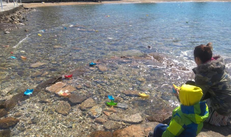 Η κ. Μπατή καλεσμένη ως ειδικός, με εχέγγυα από αντίστοιχη δράση που είχε ξεκινήσει σε τμήμα του Παιδικού Σταθμού Μυκόνου και εμπνευσμένα εξελίχθηκε τον περασμένο Μάρτιο από την Πρόεδρο του Δ.Σ. Ανδριανή Κουφού και τον Αντιπρόεδρο Βασίλη Πελέκη, τείνοντας να γίνει θεσμός, έφτιαξε με τους παρευρισκόμενους με υπομονή και τη γνώριμη γλυκύτητα ταξιδιάρικα, "συναισθηματικά φορτωμένα" χάρτινα καραβάκια , όπως παλιά, που τα Μυκονιατάκια τα ταξίδευαν στην Αλευκάντρα.