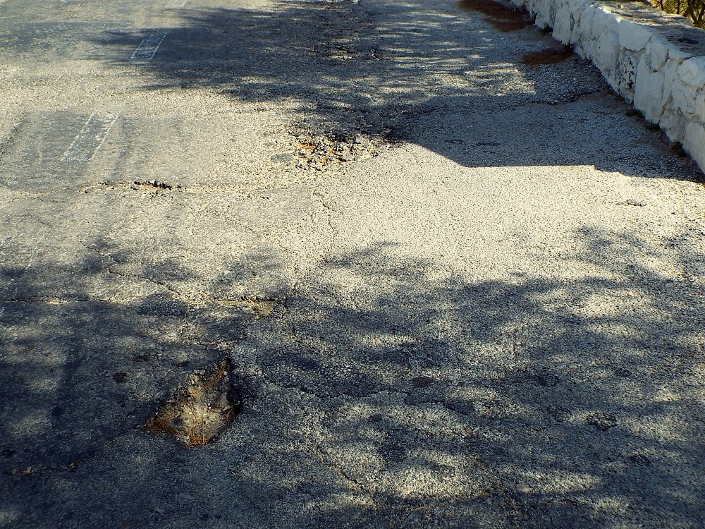 Όπως φαίνεται και από το φωτογραφικό υλικό, δεν είναι λίγα τα σημεία του δόμου, όπου η άσφαλτος έχει αποκολληθεί εντελώς και έχει δημιουργήσει επικίνδυνες λακκούβες, ενώ αρκετά από τα τοιχία, είτε έχουν καταρρεύσει, είτε τμήματά τους έχουν αποκολληθεί, με αποτέλεσμα η σταδιακή μετακίνηση των λίθων, να οδηγήσει επίσης σε κατάρρευση, θέτοντας σε κίνδυνο κάποιον, που ενδεχομένως να βρίσκεται στο σημείο.