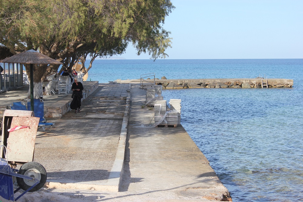 Ήδη έχουν αποκολληθεί μεγάλα τμήματα των πλακών που υφίσταντο μέχρι πρότινος προς την πλευρά της νέας επιχείρησης πλησίον της μικρής παιδικής χαράς, τμήμα το οποίο επιλέγουν λουόμενοι που δεν επιθυμούν να βρίσκονται στο αμμώδες κομμάτι της παραλίας.