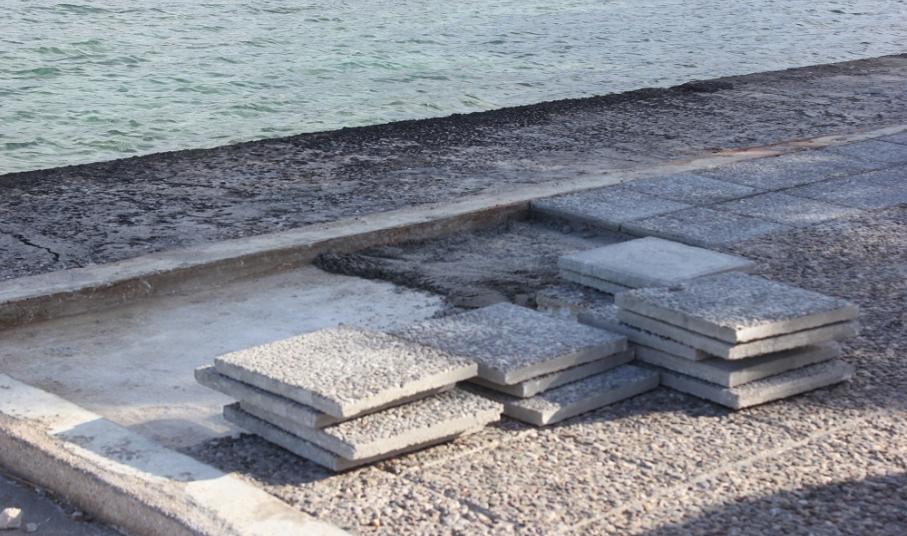 Αξίζει να σημειωθεί δε, πως αποτελούσε ένα εξαιρετικά επικίνδυνο τμήμα στην παραλία της Αζολίμνου, εξαιτίας των φθορών που έφεραν στην επιφάνειά τους οι πλάκες, με αρκετούς λουομένους δε, αλλά και μικρά παιδιά να δυσκολεύονται ακόμη και να περπατήσουν.