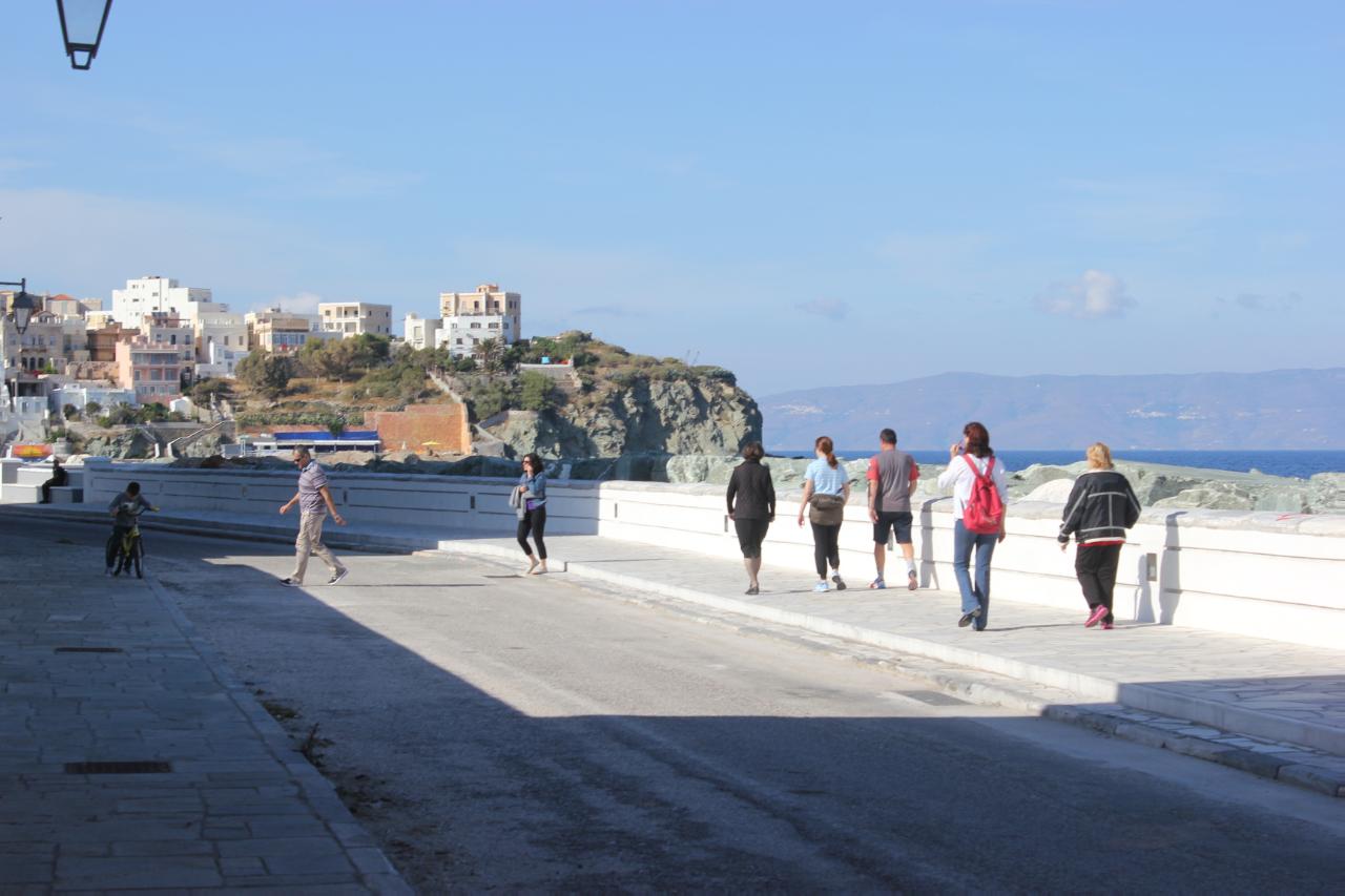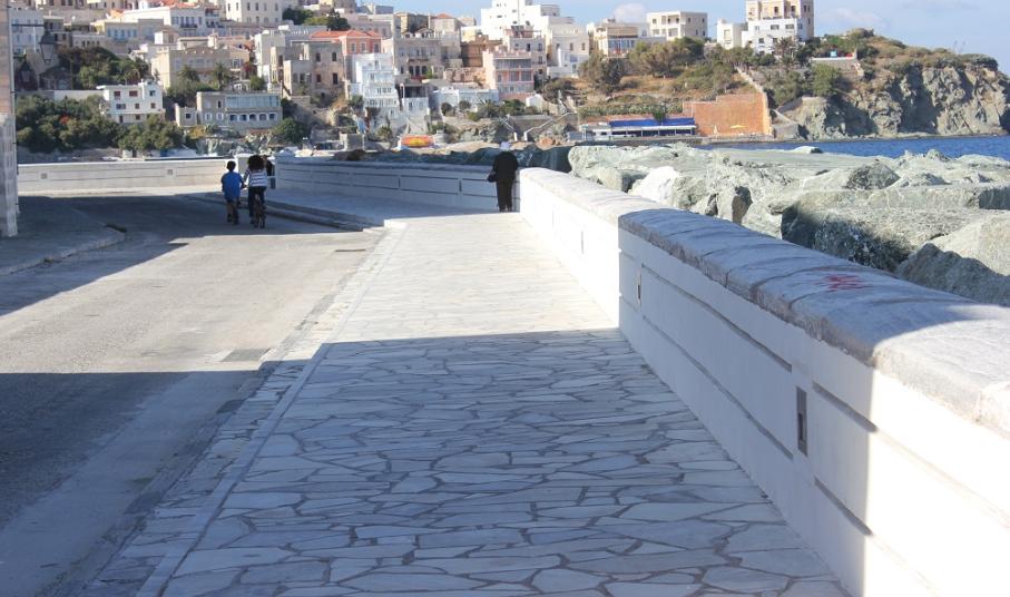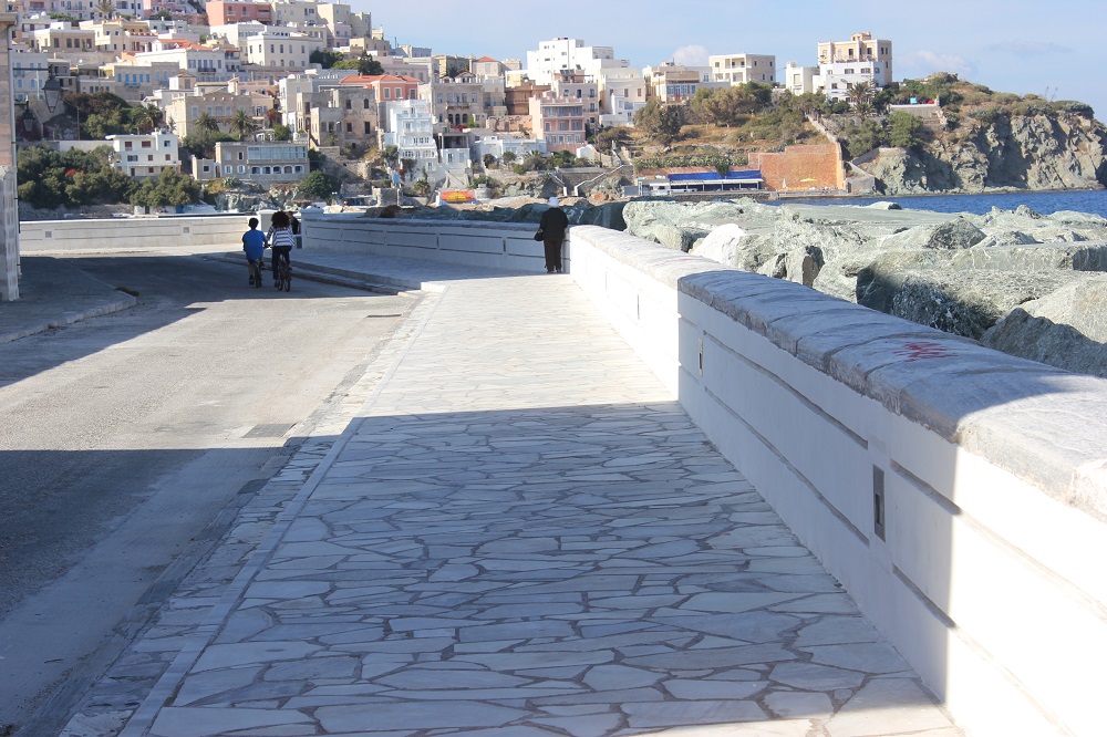 Το παζλ των παρεμβάσεων στο εν λόγω σημείο φαίνεται να συμπληρώνεται σταδιακά, αφού μετά την ενίσχυση του ήδη υπάρχοντος τοιχίου, την ανάπλαση των πεζοδρομίων και τη διαμόρφωση των επιφανειών τους με κατάλληλη πλακόστρωση, αλλά και την ανάδειξη της μικρής “πλατείας” σε θέση θέας προς τη θάλασσα και τη συνοικία Βαπόρια, τα φωτιστικά που τοποθετήθηκαν ήρθαν να φωτίσουν τη νέα εικόνα.