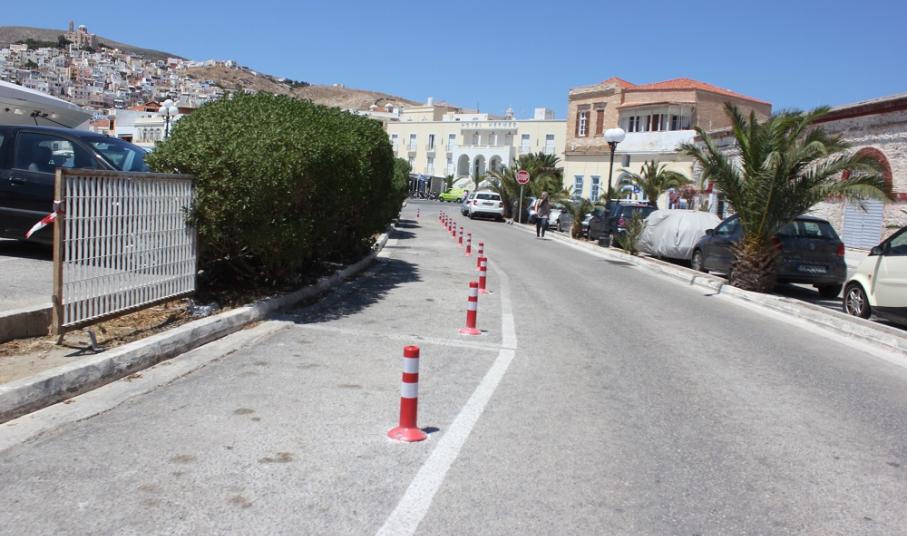 Πρόσφατη παρέμβαση αποτελεί η τοποθέτηση πλαστικών εύκαμπτων κολωνακίων περιμετρικά της αρχικής κεντρικής νησίδας στη θέση Νησάκι, χώρο, τον οποίο επιθυμεί να διαθέσει στο εξής, προς στάθμευση των δικύκλων. Σύμφωνα με όσα είναι γνωστά μέχρι σήμερα, σχετική γνωμοδότηση έχει λάβει η διοίκηση του Δημοτικού Λιμενικού Ταμείου Σύρου σε συνεδρίαση των μελών της, οπότε και πρώτη φορά είχε καταστεί γνωστή η πρόθεση κατάργησης θέσεων στάθμευσης οχημάτων, προκειμένου να εξυπηρετούνται οι οδηγοί δικύκλων κατά τη διάρκεια των καλοκαιρινών μηνών.