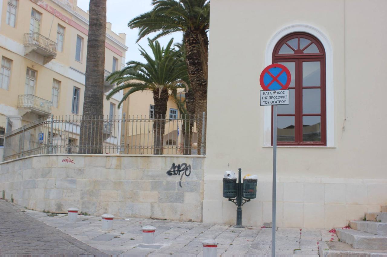 Αν και σύνηθες το φαινόμενο του βανδαλισμού των όψεων των νεοκλασσικής αρχιτεκτονικής κτιρίων, που κοσμούν το κέντρο της πόλης, με τη χρήση σπρέι, η πρακτική αυτή, φαίνεται δύσκολο να αποτραπεί, δεδομένου, ότι αποτελεί ιδιαίτερα δύσκολο εγχείρημα η «σύλληψη» των υπεύθυνων επ’ αυτοφώρω.