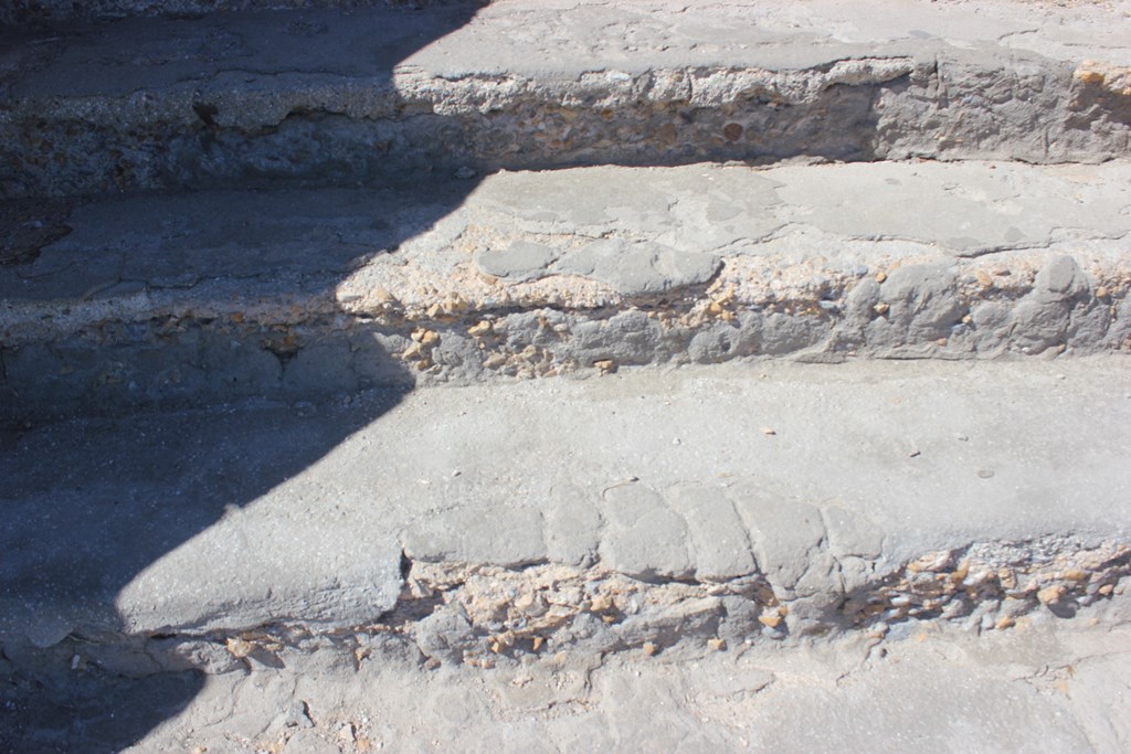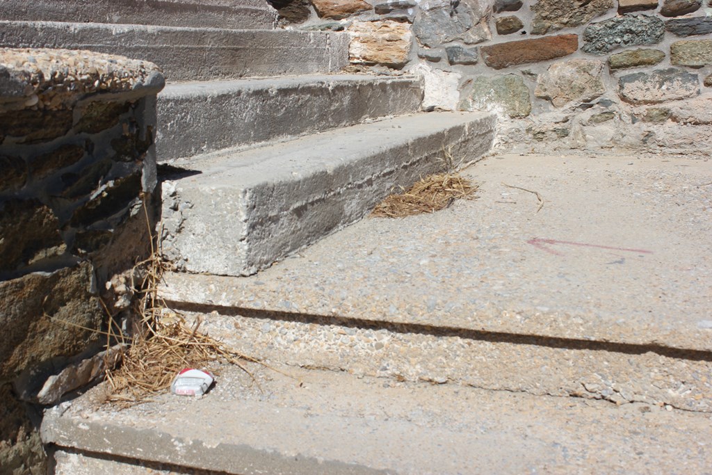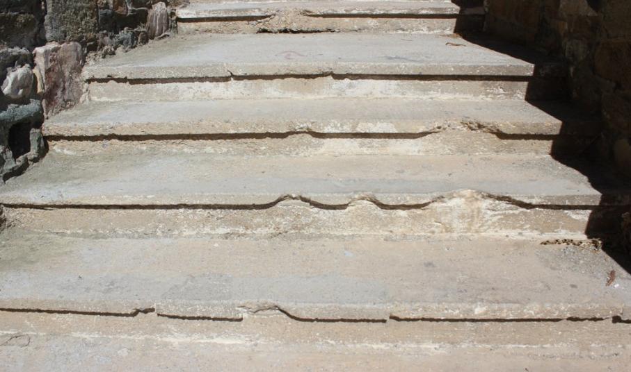 Ωστόσο, τα σκαλοπάτια από τσιμέντο παρουσιάζουν εκτεταμένες φθορές, καθώς στα περισσότερα εξ’ αυτών κομμάτια από σκυρόδεμα έχουν αποκολληθεί, με αποτέλεσμα να υπάρχει μεγάλος κίνδυνος πρόκλησης ατυχήματος, ιδιαίτερα για πολίτες μεγαλύτερης ηλικίας.