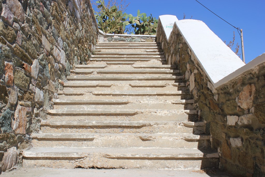 Σημαντικές φθορές παρατηρούνται στα σκαλοπάτια, που ξεκινούν από την περιοχή «Βαπόρια», στο ύψος του κτιρίου της Αστυνομικής Διεύθυνσης Κυκλάδων, με κατάληξη στην παραλία «Αστέρια».