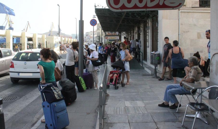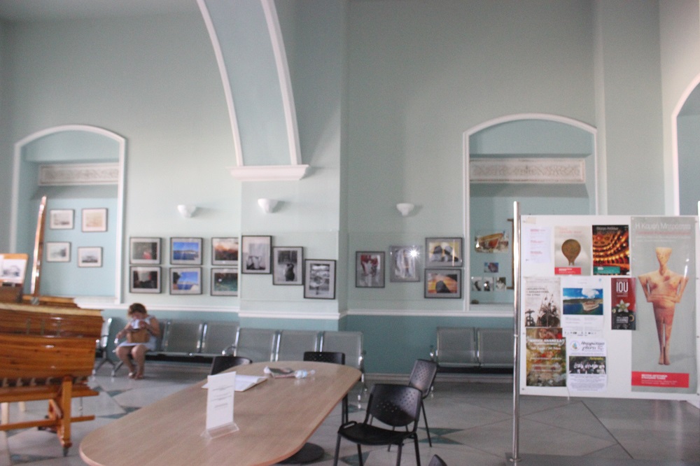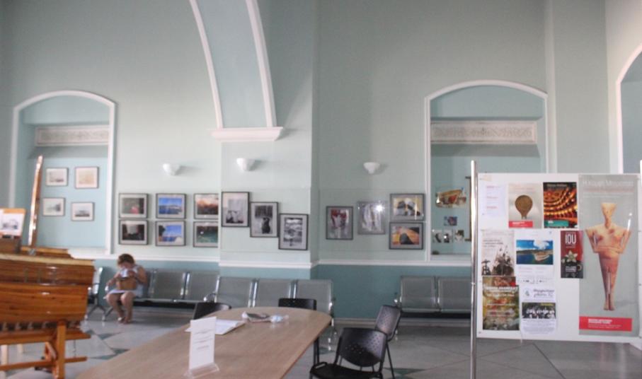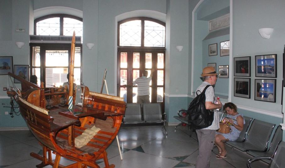 Η λαστιχομηχανή από το πλεκτήριο των Ζησιμάτου – Κωνσταντινόπουλου που έχει τοποθετηθεί στον Επιβατικό Σταθμό, καθώς επίσης το σχετικό φωτογραφικό υλικό που τη συνοδεύει αλλά και, οι εικόνες από τους παλαιούς ταρσανάδες της Σύρου, μα παράλληλα και εργαλεία των καραβομαραγκών που ανήκουν στις συλλογές του Βιομηχανικού Μουσείου Ερμούπολης κοσμούν την αίθουσα αναμονής και παραμένουν εδώ και πολλούς μήνες στη “θέση” τους, προσκαλώντας τους επισκέπτες να μεταβούν στους επισκέψιμους χώρους. Ταυτόχρονα, φωτογραφίες της Σύρου και ειδικότερα, της Άνω Σύρου αλλά και της Ερμούπολης και των χωριών, καθώς όμως και οι αφίσες των μουσείων του τόπου, προσελκύουν με τον δικό τους τρόπο τον επισκέπτη ενώ σε εμφανές σημείο υπάρχει το πολιτιστικό πρόγραμμα της θερινής περιόδου, το οποίο και μπορούν να προμηθεύονται οι ενδιαφερόμενοι.