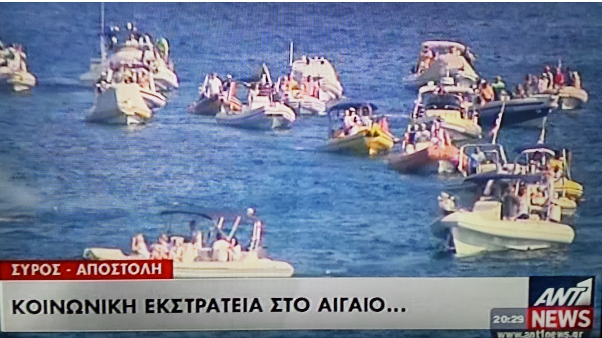 Στο βραδινό δελτίο ειδήσεων του μεγάλου τηλεοπτικού σταθμού ΑΝΤ1 "πρωταγωνίστησε" απόψε η Σύρος με αφορμή τη διοργάνωση της 9ης Πανελλήνιας Συνάντησης Ομίλων Φουσκωτών και Ταχύπλοων Σκαφών που πραγματοποιήθηκε στο νησί.