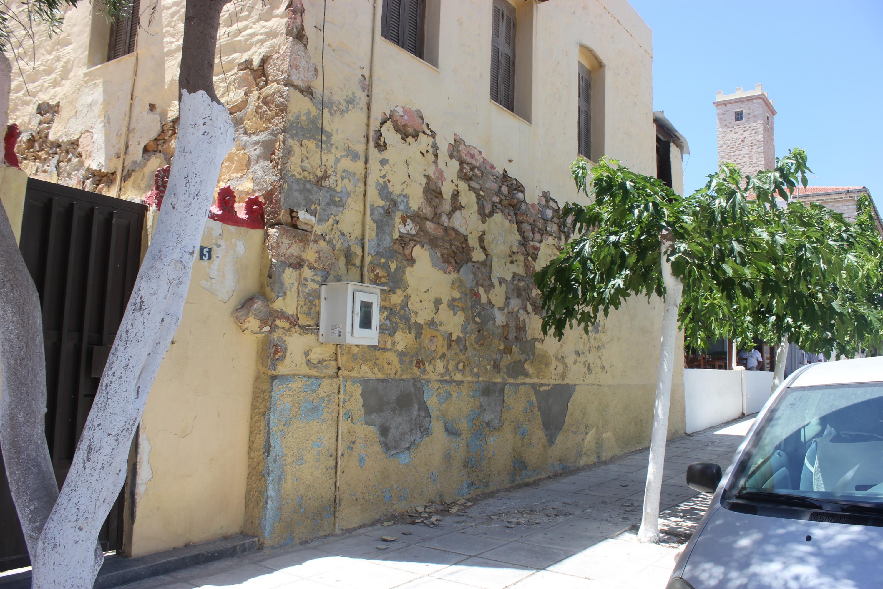 Το ζήτημα των αφημένων στο χρόνο κτηρίων της πόλης αλλά και των ευρύτερων περιοχών αυτής επανέρχεται στο προσκήνιο μέσα από τηλεφωνική όχληση προς την εφημερίδα, στο πλαίσιο της οποίας πολίτης του νησιού επεσήμανε την επικινδυνότητα που κρύβεται σε πολλά εξ αυτών, αφού λόγω παλαιότητάς τους αποκολλώνται σοβάδες που πέφτουν στα πεζοδρόμια.