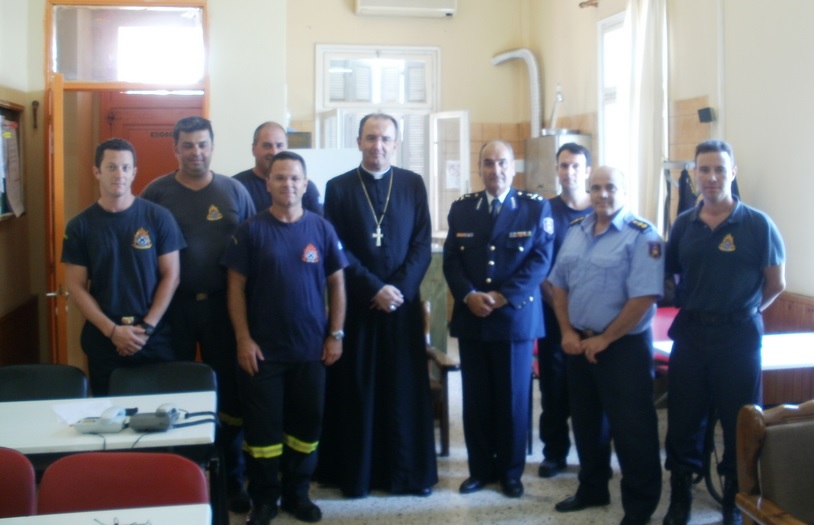 Σήμερα το πρωί πραγματοποιήθηκε η προγραμματισμένη επίσκεψη του νέου Καθολικού Επισκόπου Σύρου-Θήρας και αποστολικού τοποτηρητή της Καθολικής Επισκοπής Κρήτης Σεβασμιώτατου Πέτρου Στεφάνου, στις εγκαταστάσεις της Πυροσβεστικής Υπηρεσίας Ερμούπολης.