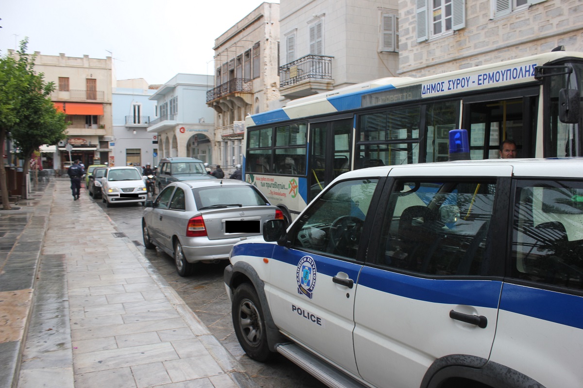 Με την πρώτη εμφάνιση της κακοκαιρίας, οι κεντρικοί δρόμοι της Ερμούπολης «πλημμύρισαν» από παρανόμως σταθμευμένα οχήματα, που προκάλεσαν κυκλοφοριακό κομφούζιο.