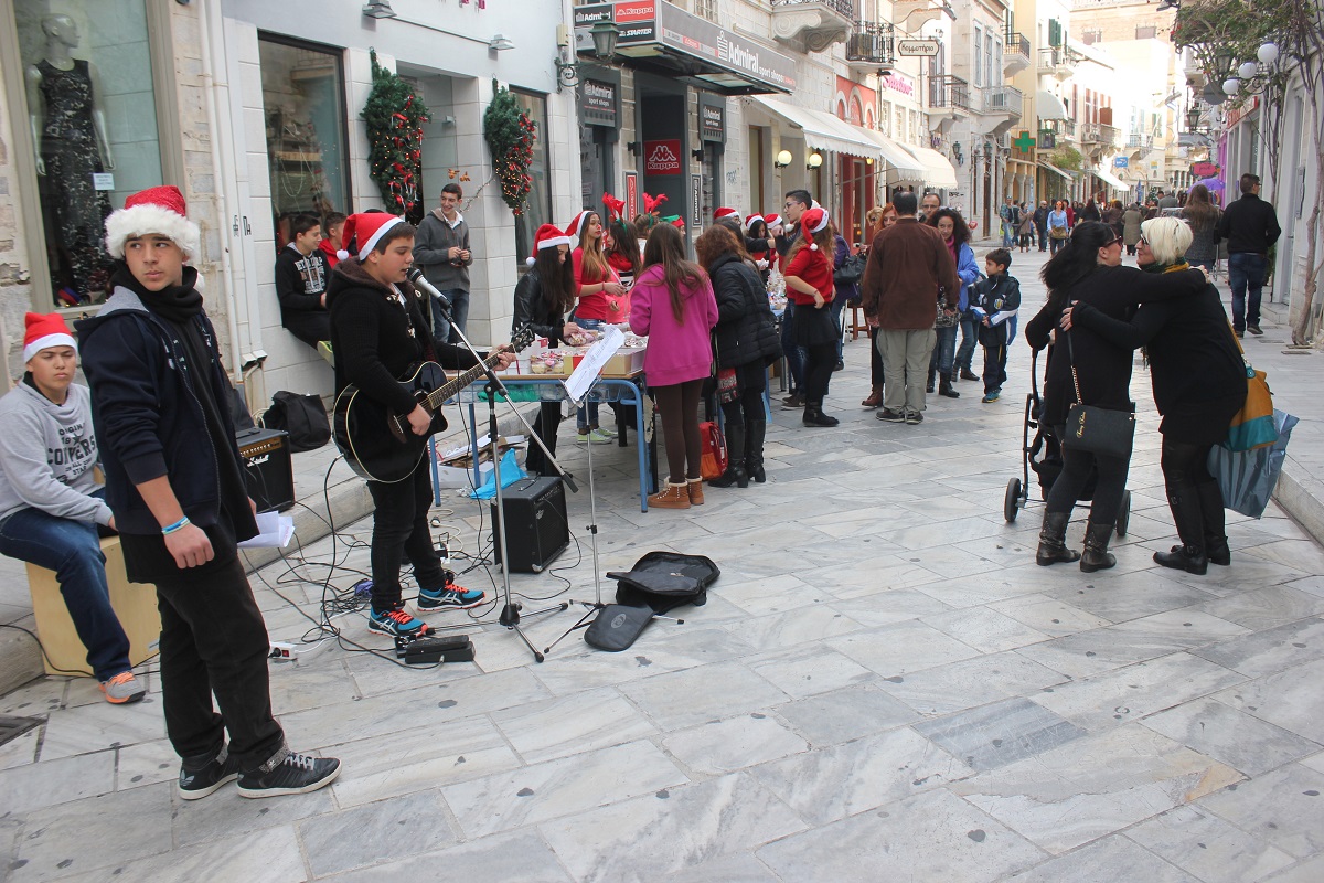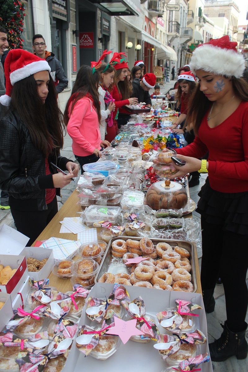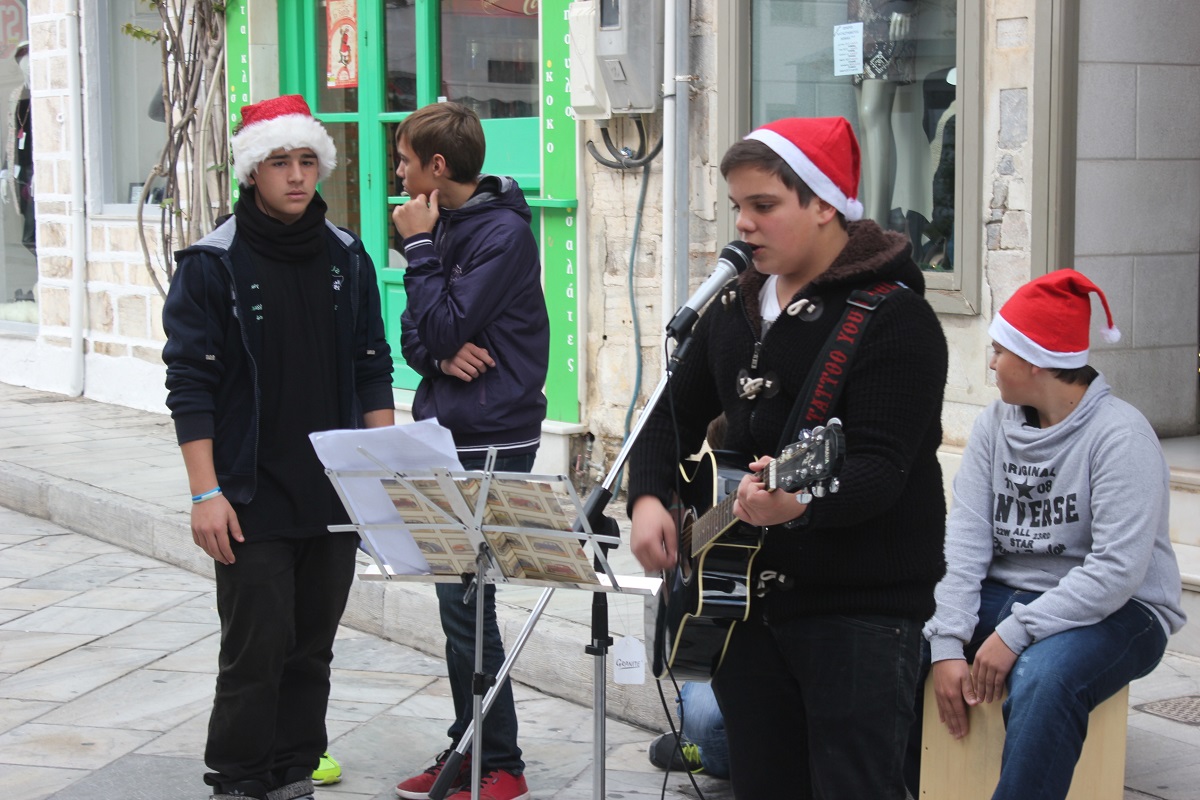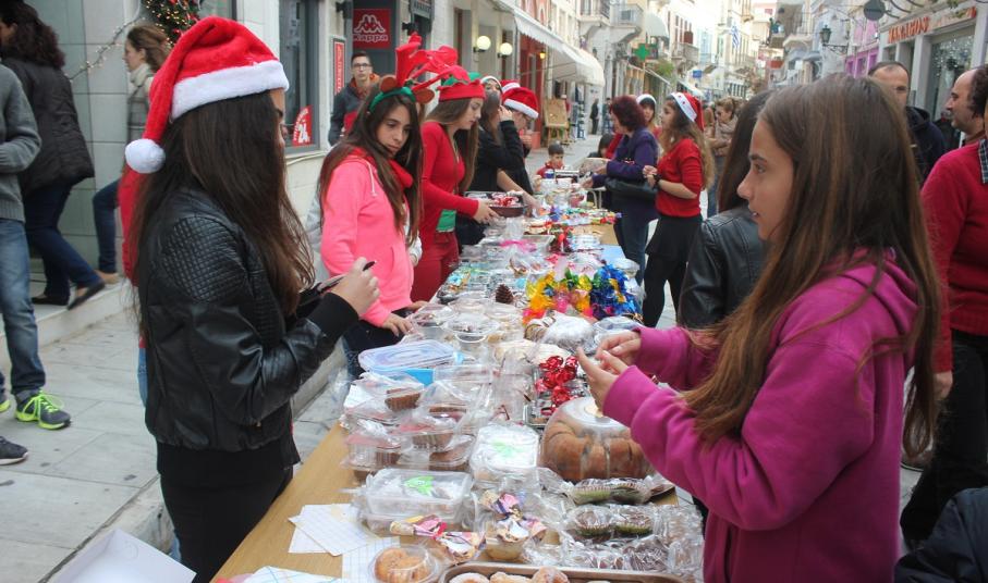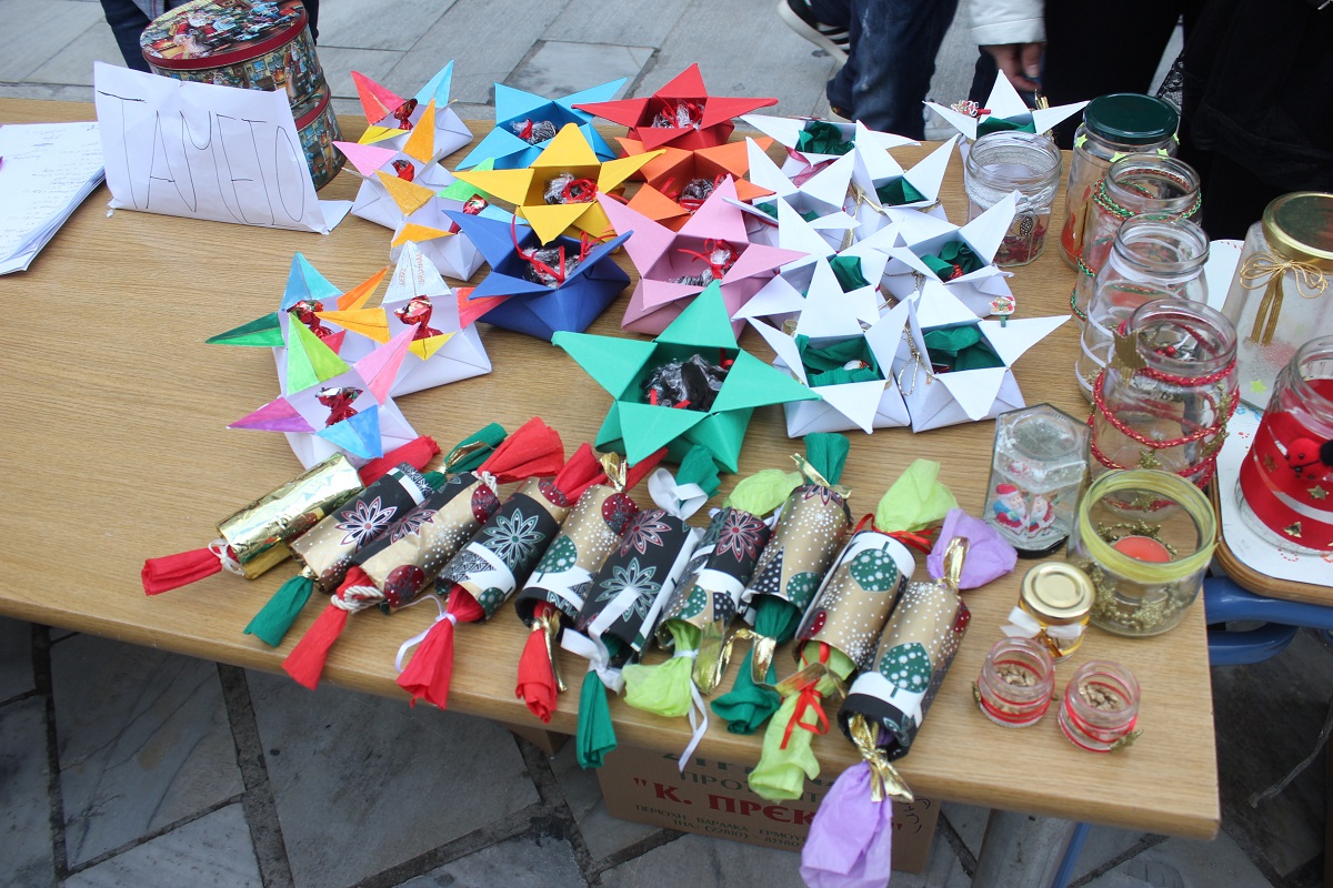 Το παζάρι πραγματοποιήθηκε στην οδό Πρωτοπαπαδάκη, αλλά και στην οδό Χίου με τους μαθητές να εύχονται σε όλους “καλές γιορτές” με υγεία, χαρά και πολλή γλύκα.
