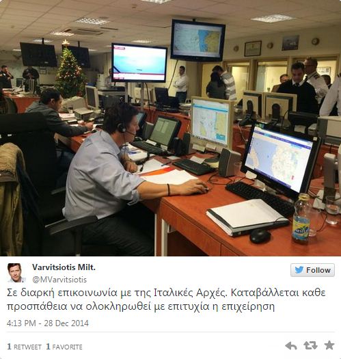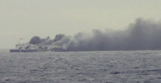 Δίπλα στο φλεγομενο πλοίο, βρίσκεται ήδη, το Ιταλικό ρυμουλκό SAR, ενώ πλησιάζουν τα επίσης Ιταλικά ρυμουλκά Marietta baretta και Tenax.