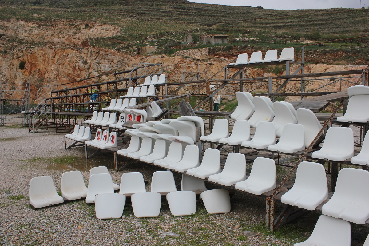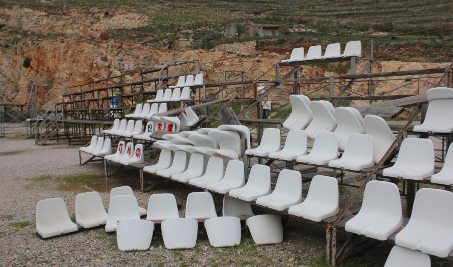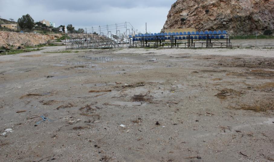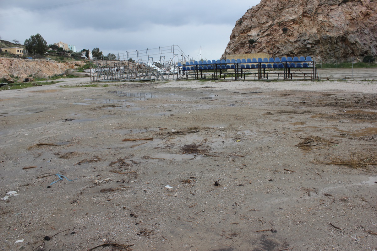 Άγνωστα παραμένουν όλα τα ερωτήματα που σχετίζονται με την ανύπαρκτη “φύλαξη” του χώρου, ο οποίος -όπως φαίνεται και από τα σπασμένα καθίσματα της εξέδρας που κείτονται στο έδαφος, έχει αφεθεί ολοκληρωτικά στο έλεός του και δεν ελέγχεται από κανέναν.